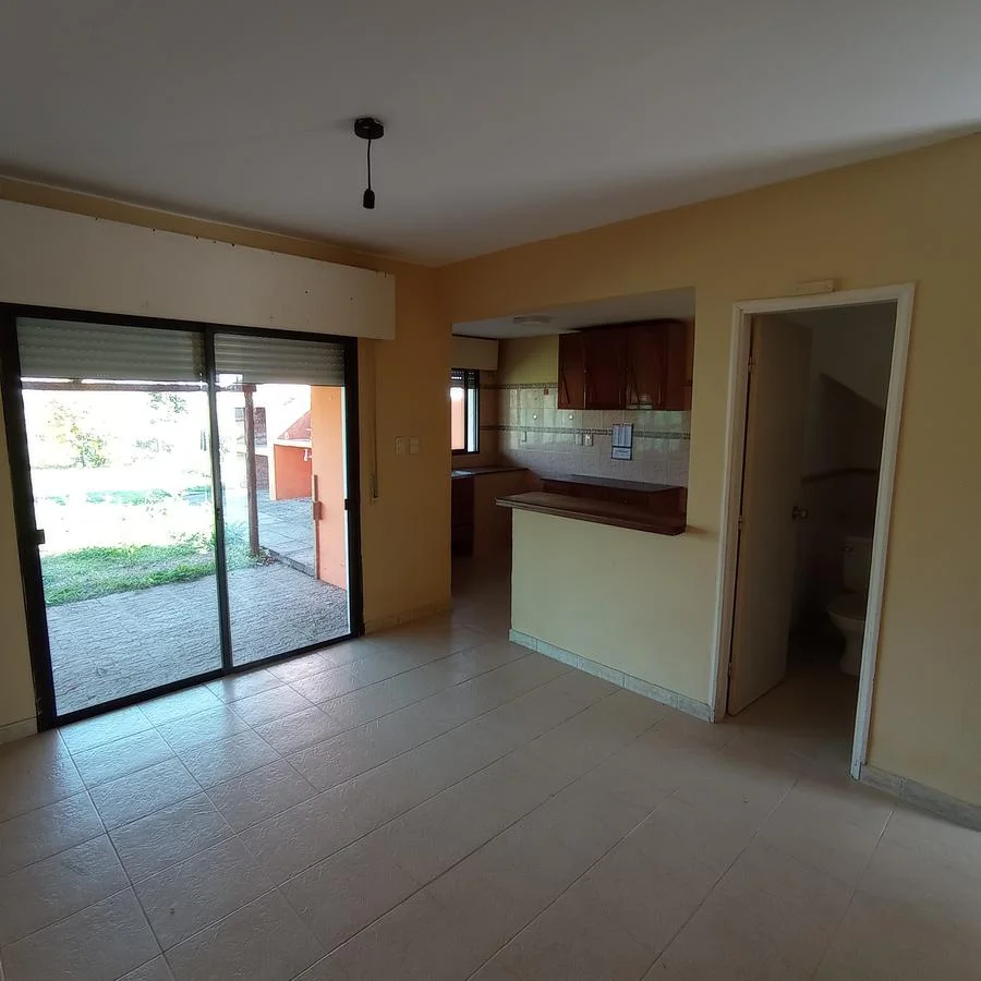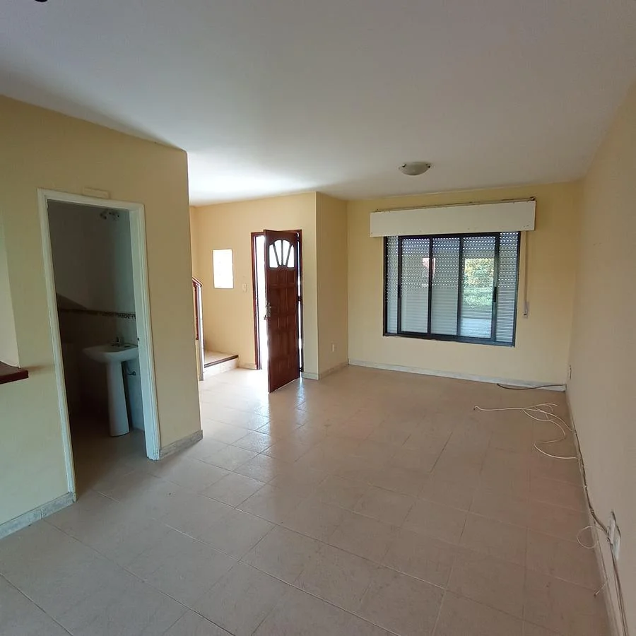 Dos dormitorios, cocina definida con barra desayunador, living comedor, un baño de servicio en planta baja y otro baño (completo) en planta alta con tina y calefón ya instalado, patio con churrasquera y espacio para techado para el auto.