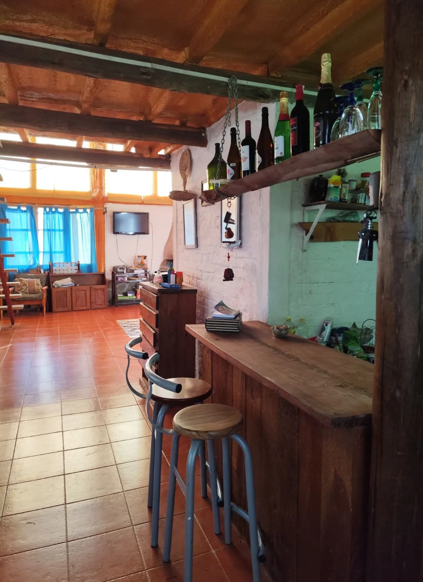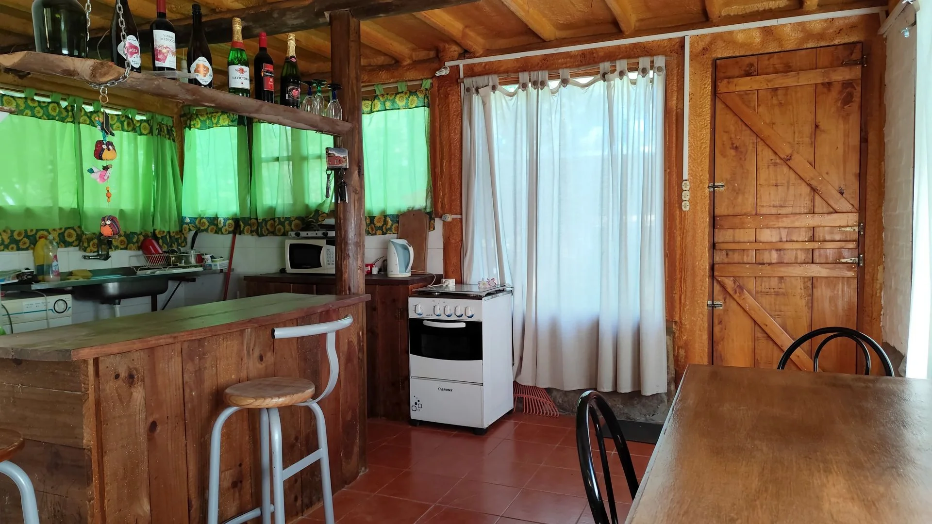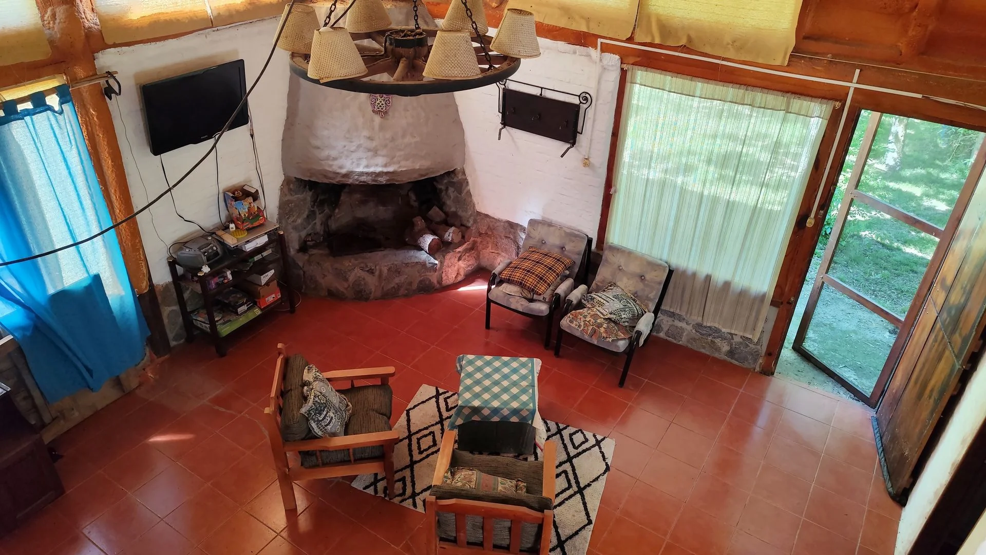 - Living con gran estufa a leña, conectado al comedor y cocina