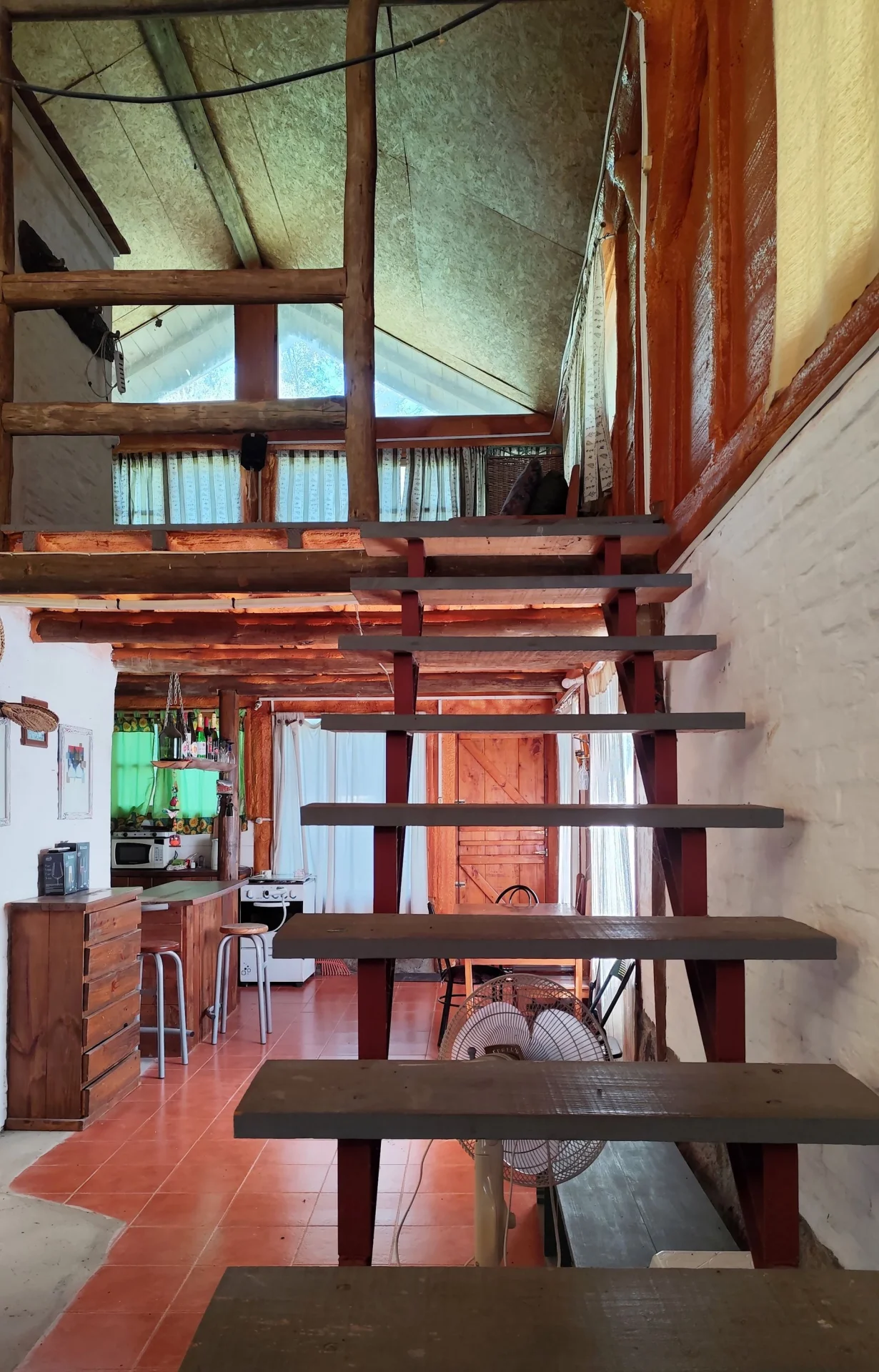 - Dormitorio en planta alta, accesible por escalera de madera, posibilidad de ampliar la planta alta y crear otro dormitorio.