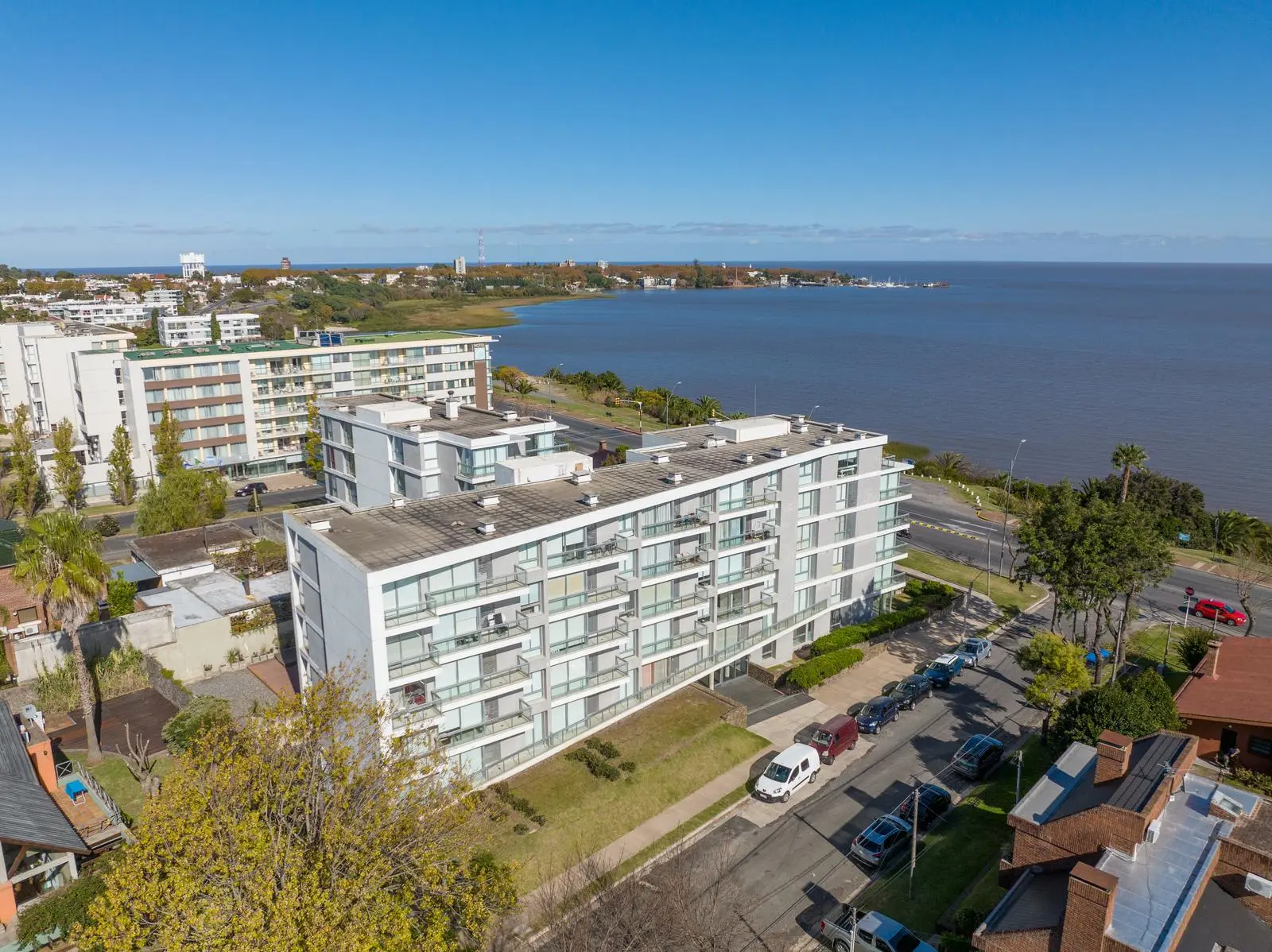 Ubicado en una de las zonas más privilegiadas de Colonia del Sacramento, este apartamento se sitúa frente a la playa, sobre un terreno naturalmente elevado que garantiza una panorámica inigualable al Río de la Plata y sus atardeceres únicos.