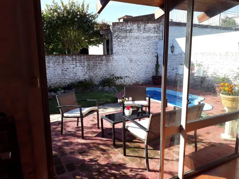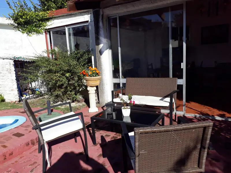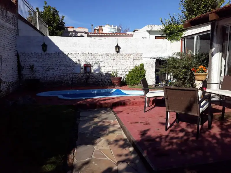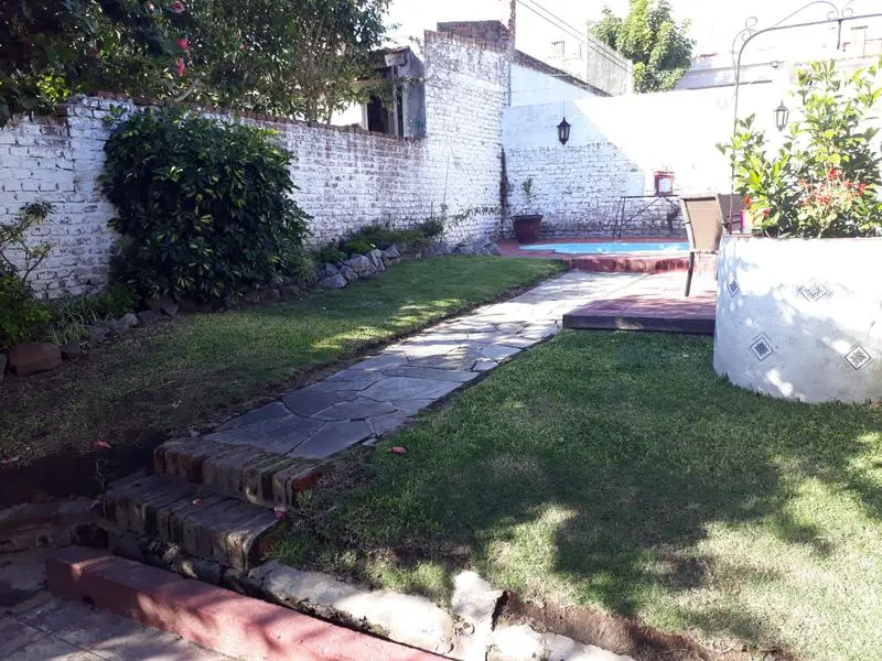 Cuenta con lindo jardín parquizado con cochera, pequeña pileta y barbacoa con parrillero.