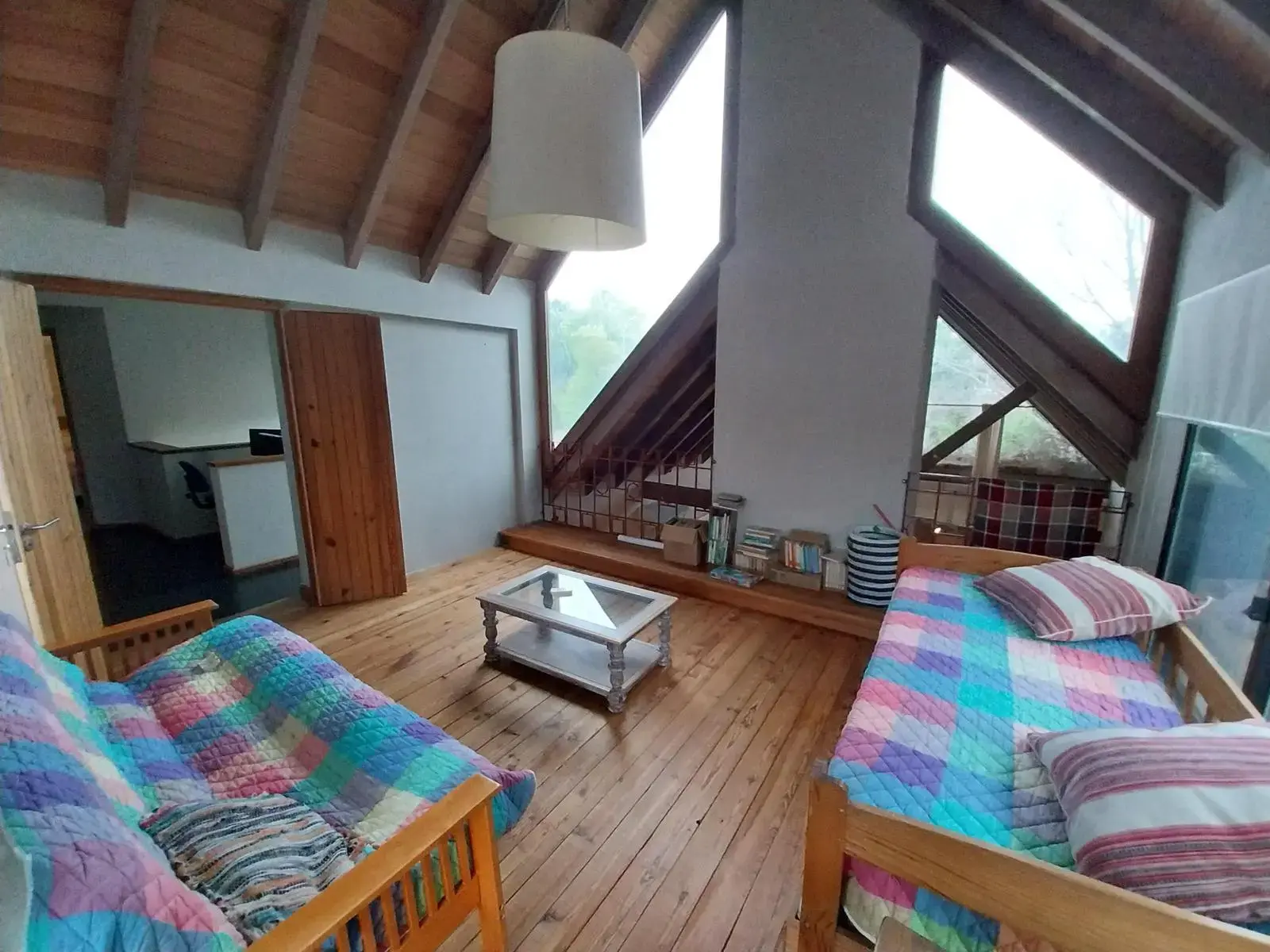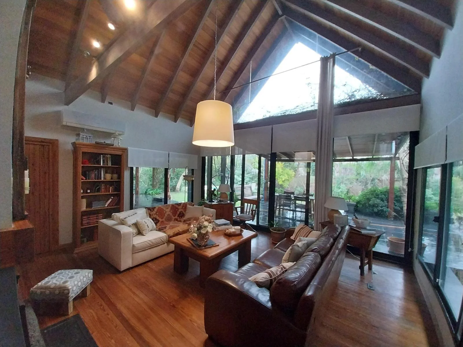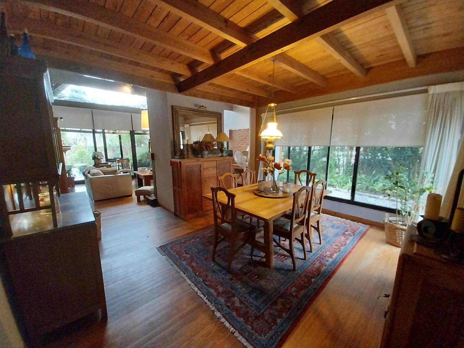 Muy buena construcción con armonioso mestizaje de materiales, incluyendo pisos de pinotea en excelente estado y excelentes aberturas logrando crear una atmósfera de tranquilidad y contacto con el exterior a través de los amplios ventanales, los que encontramos en todos los ambientes de la propiedad y que permiten el fácil acceso al exterior haciéndola a su vez la hacen muy luminosa.