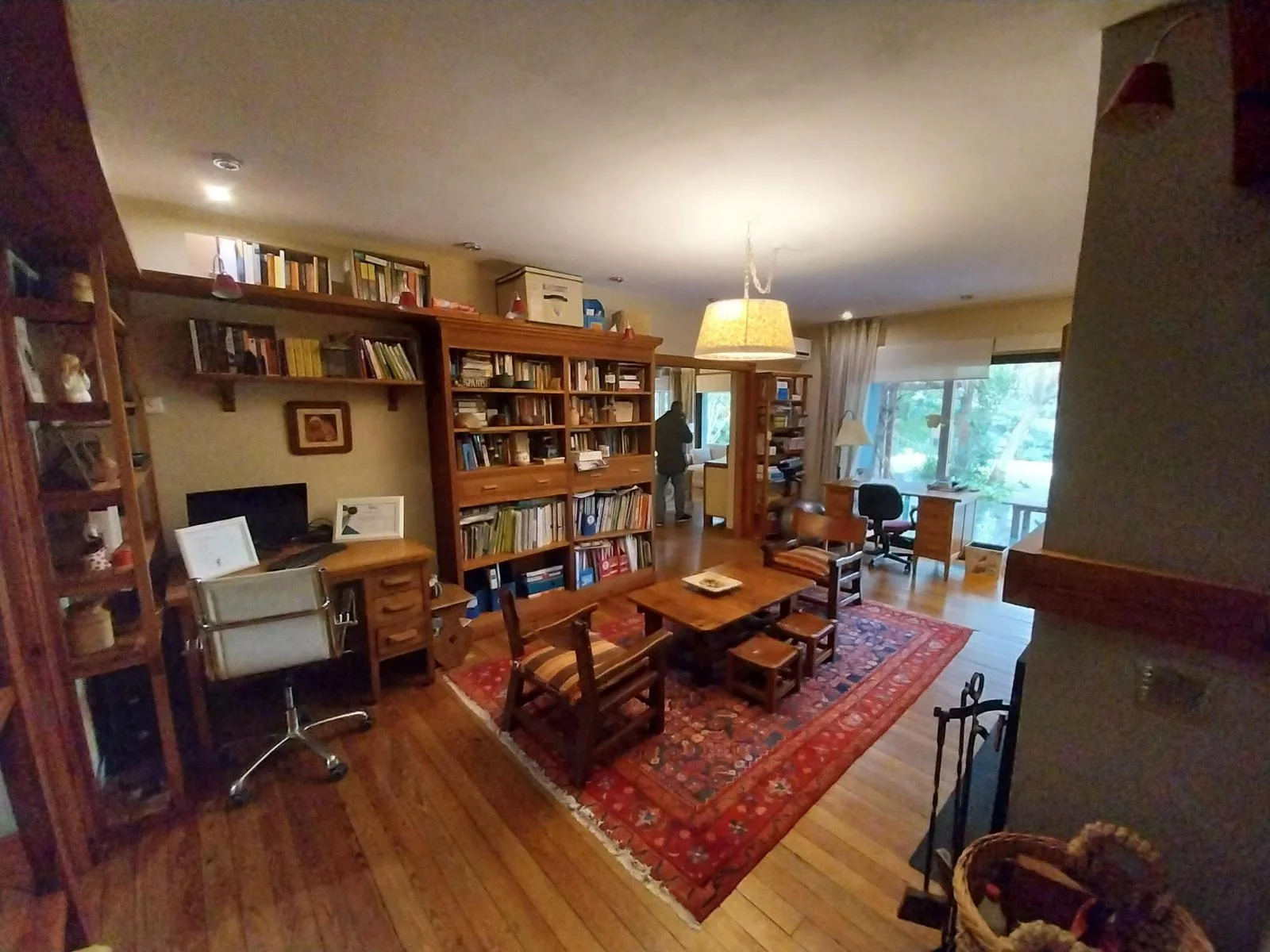 Se desarrolla en dos plantas, encontrando en la planta baja el hall de acceso y distribución, cocina con isla y artefactos empotrados, lavadero completo con acceso exterior, atravesando el mencionado hall encontramos el comedor, living con estufa a leña y techo a dos aguas de doble altura, escritorio o taller, estar íntimo con biblioteca y estufa a leña, la suite principal con amplio vestidor doble con baulera ,baño con jacuzzi y acceso a la galería exterior y zona de jardín.