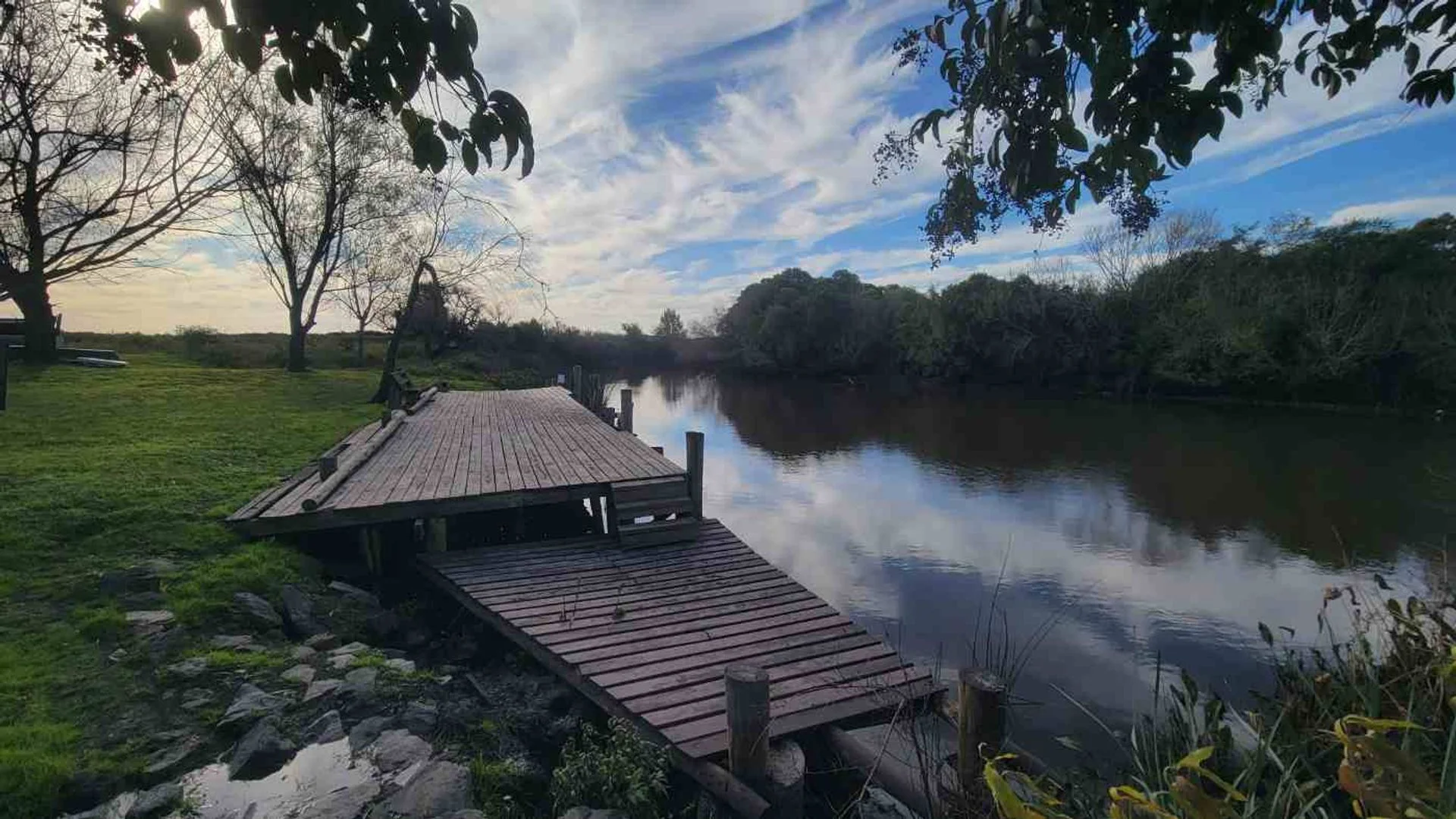 La chacra cuenta con tajamar propio, acceso terrestre y acceso náutico, con posibilidad de amarre dentro del barrio y un muelle exclusivo ya disponible, rodeado de una zona arbolada con parrilleros y mesas.