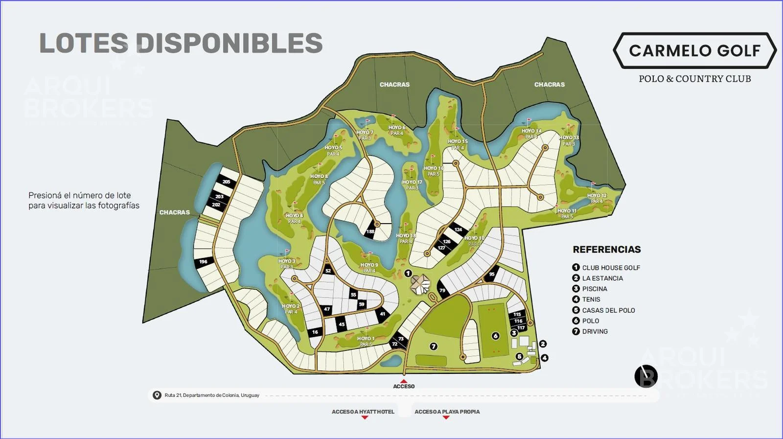 Amenities: cancha de golf, cancha de polo, cancha de tenis, cabalgatas, recorridos en bicicletas, deportes náuticos y playa de uso exclusivo.