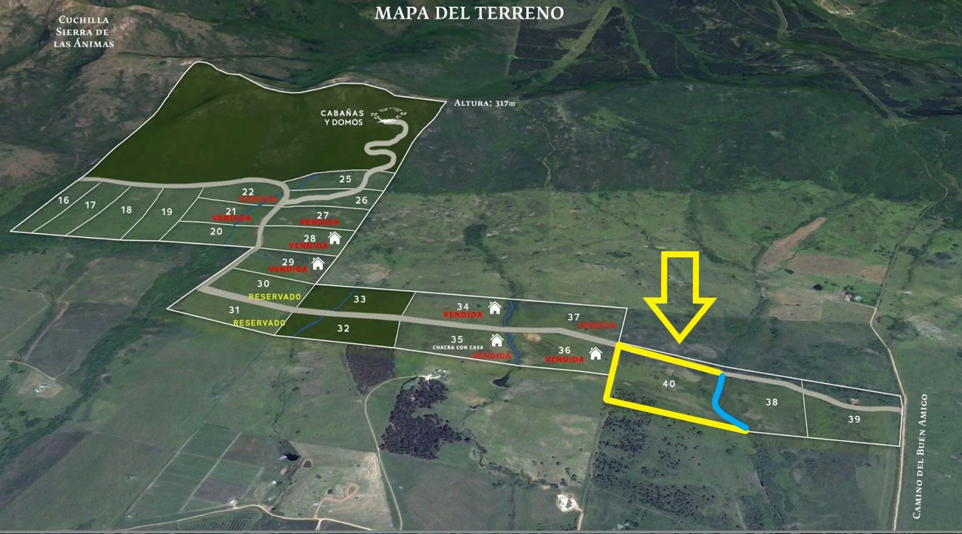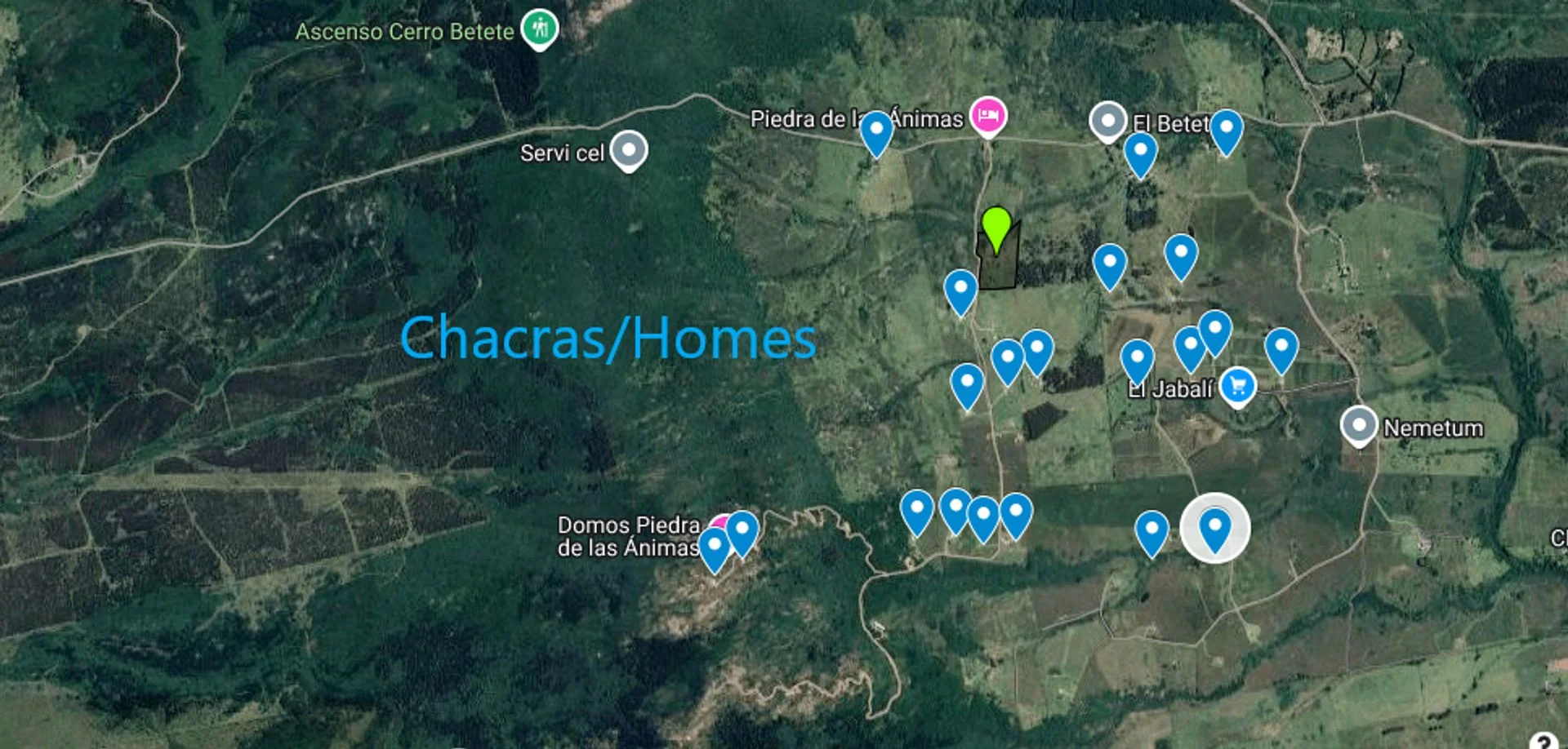El desarrollo de 40 chacras se inicia en esta zona y se extiende hacia el valle, con locaciones estupendas. Ese valle hoy ya cuenta con una veintena de casas de campo y chacras, algunas que son utilizadas por sus