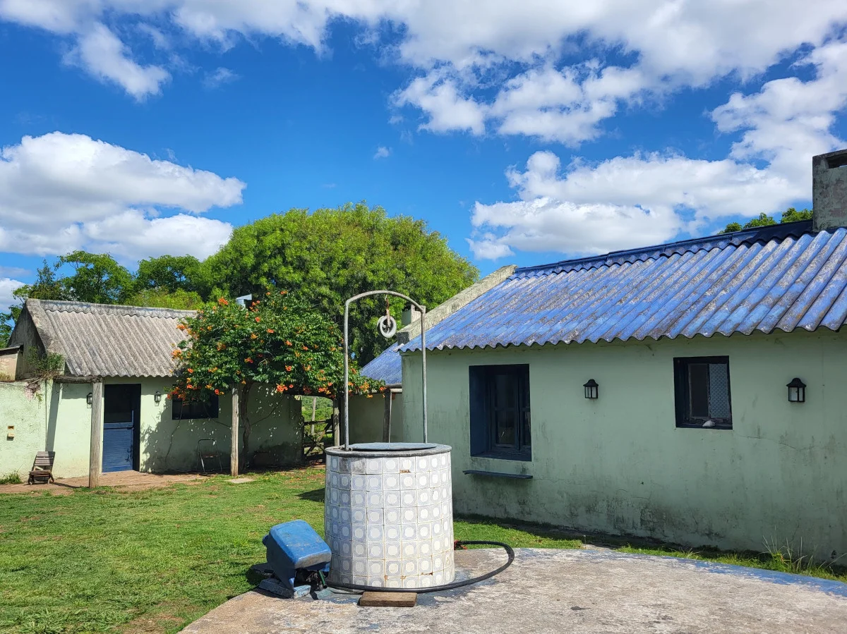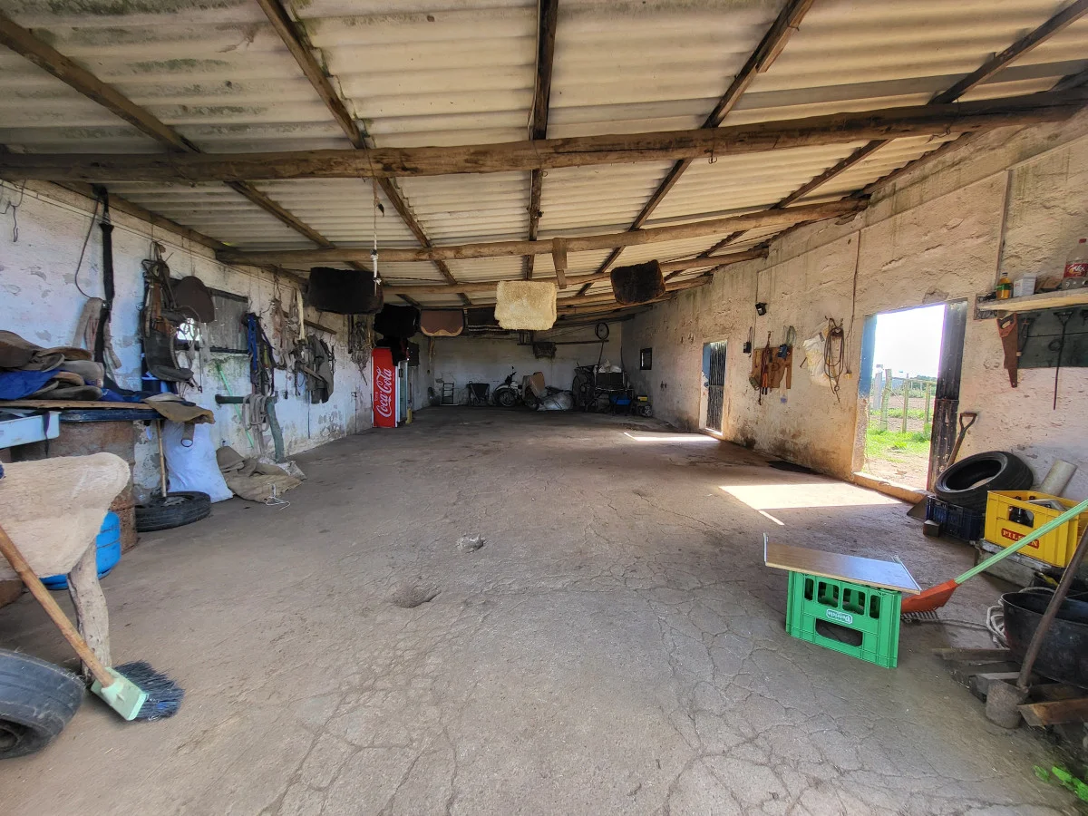 Cuenta con un casco de estancia de estilo, con 2 dormitorios, un baño completo. Living comedor con estufa a leña y un deck con vistas al tajamar y a unos atardeceres de ensueño. Casa de servicio. Gran galpón.