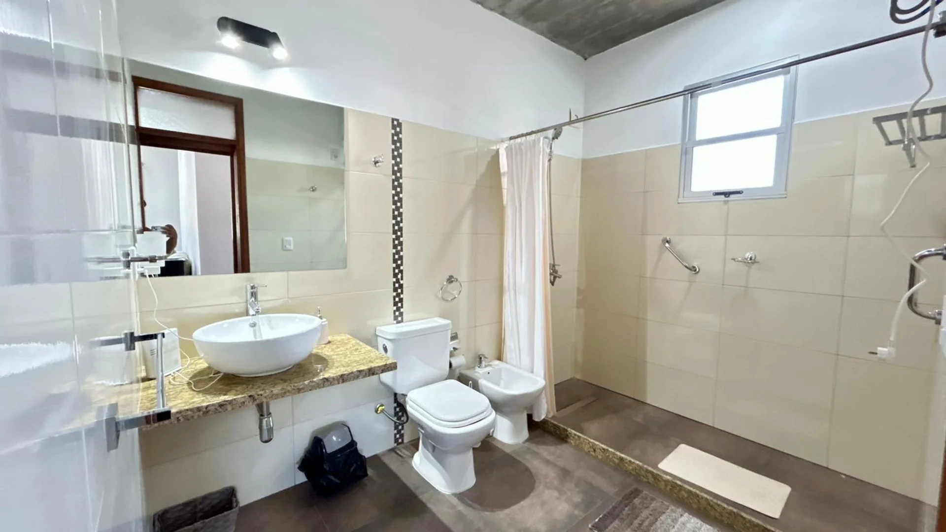 En planta alta se encuentran dos dormitorios, ambos con aire acondicionado, un medio dormitorio con cama de una plaza y un tercer baño completo. La propiedad cuenta además con dos terrazas, parrillero, portón eléctrico y sistema de alarma.