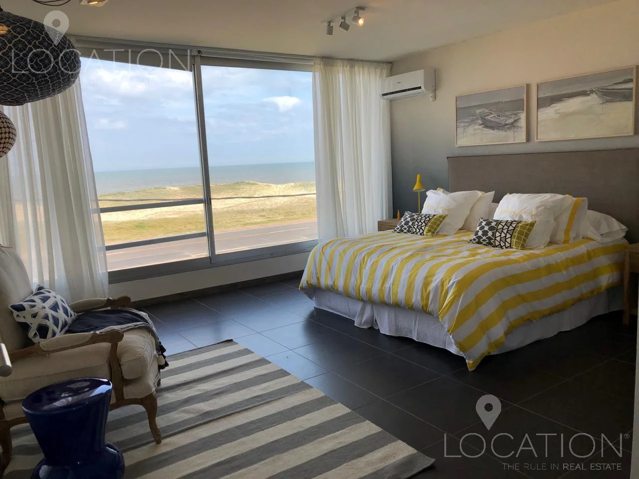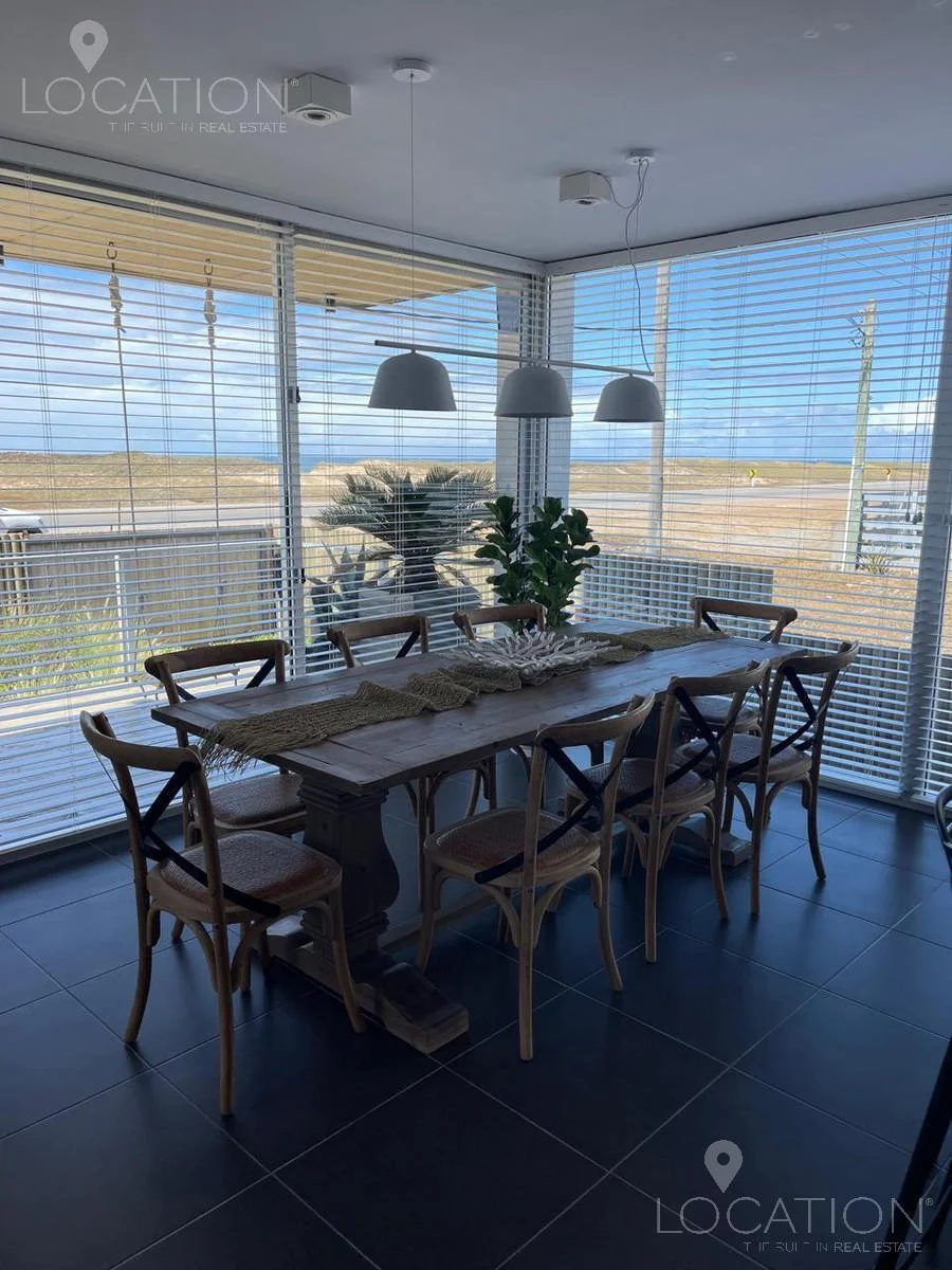 Casa de tres plantas en el Barrio de Santa Monica a 5 minutos de Jose Ignacio. En planta bajo , la cocina con diseño y tecnologia, se une a un comedor, proximo a living espacioso con vista al mar. En la misma planta se encuentran dos dormitorios con dos camas individuales cada uno y un baño compartido. En la segunda planta , se encuentran dos dormitorios en suite , uno con vista al mar y el otro con disposicion norte con vista a la laguna de los flamencos. En el tercer piso, cuentan con una terraza panoramica, segunda parrilla techada, y lavadero. La casa cuenta con habitacion y baño de servicio en un subsuelo.