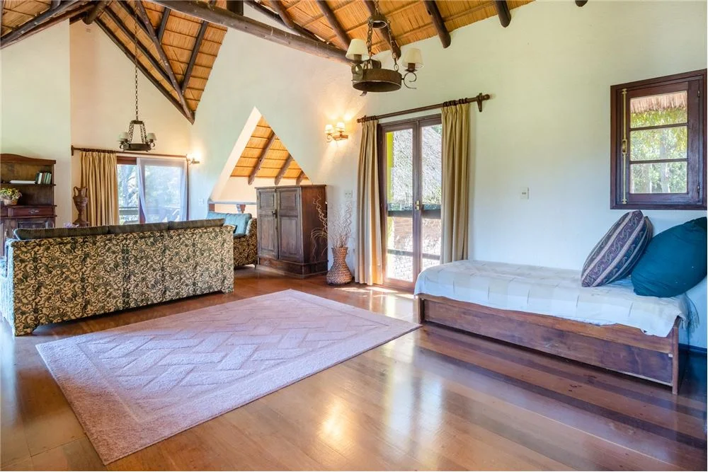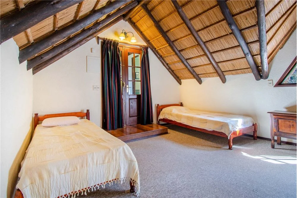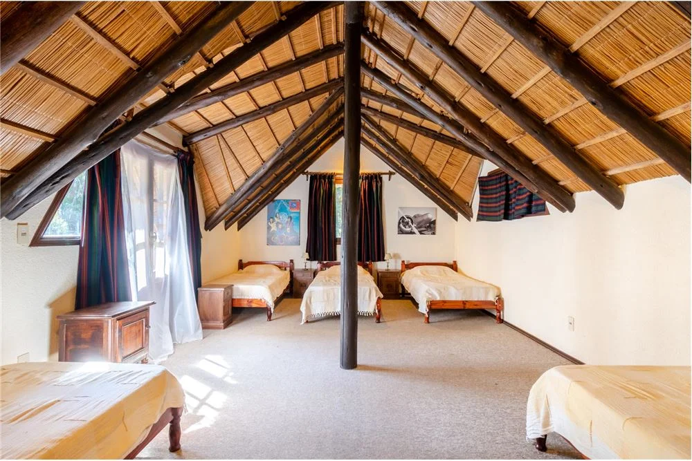 Dormitorio buhardilla- 4.00 x 7.30 m2 con dos balcónes, uno hacia el frente Sur de la casa, y otro con vista hacia piscina y barbacoa.