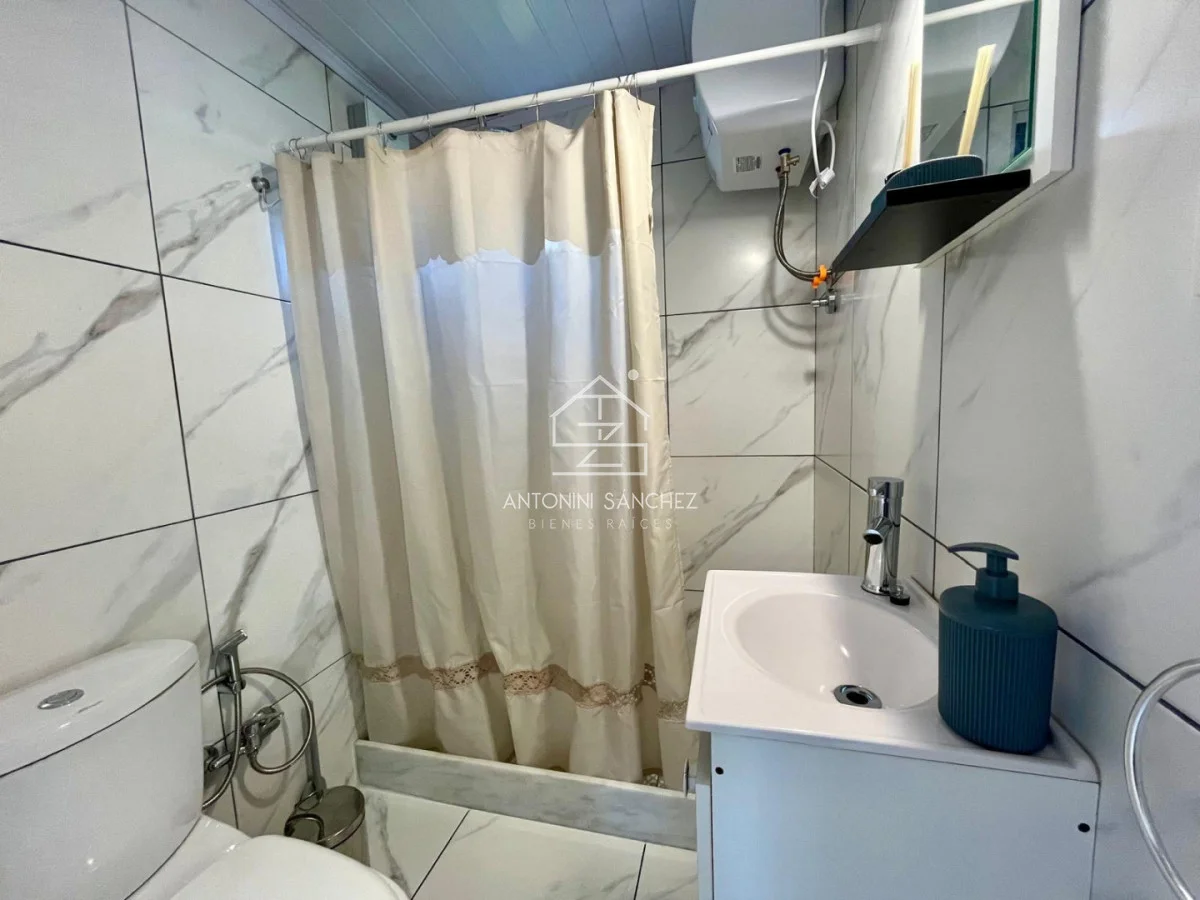 Esta propiedad cuenta con dos dormitorios y un baño moderno con columna de ducha e hidrojets.