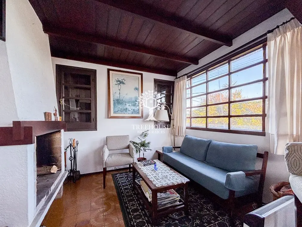 Al ingresar nos recibe el hall que da acceso al área social, donde encontramos living con estufa a leña, comedor diario y cocina funcional.