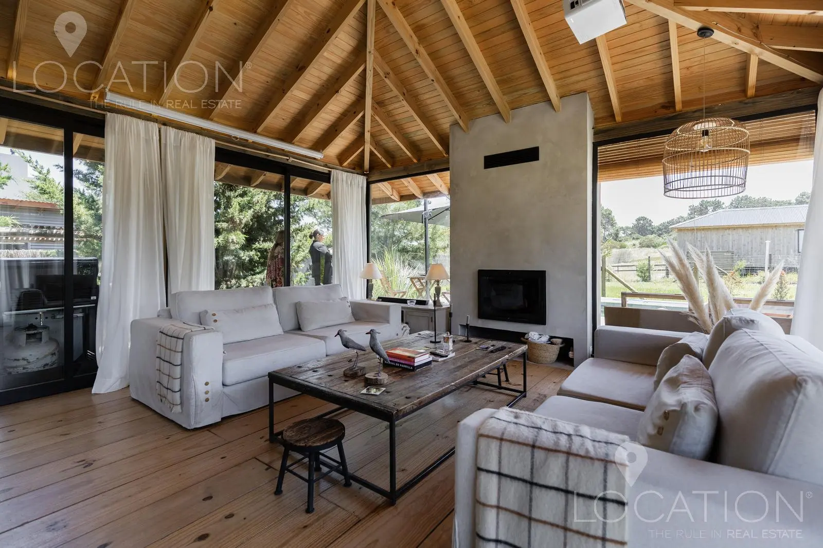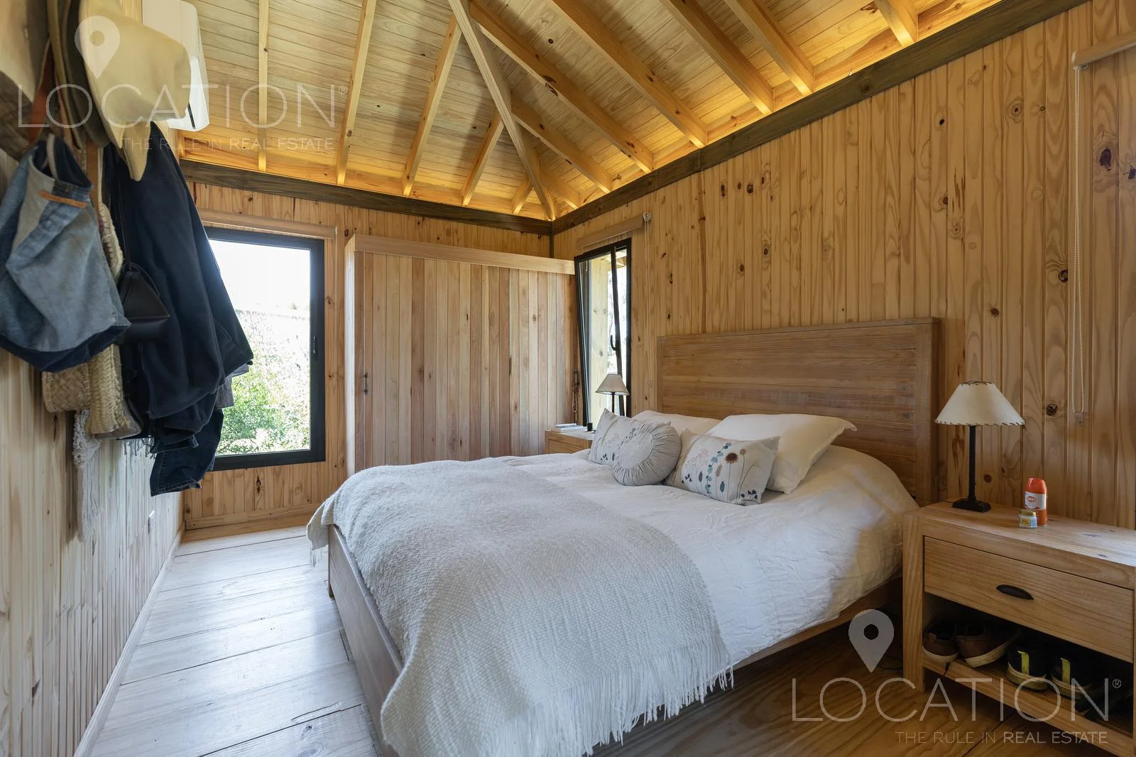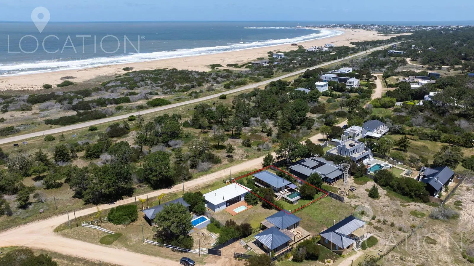 Casa de diseño en Arenas de Jose Ignacio de un dormitorio y un baño. Cocina Americana con living comedor integrado. Cuenta con piscina y parrilla portatil con soalrium y disposicion norte