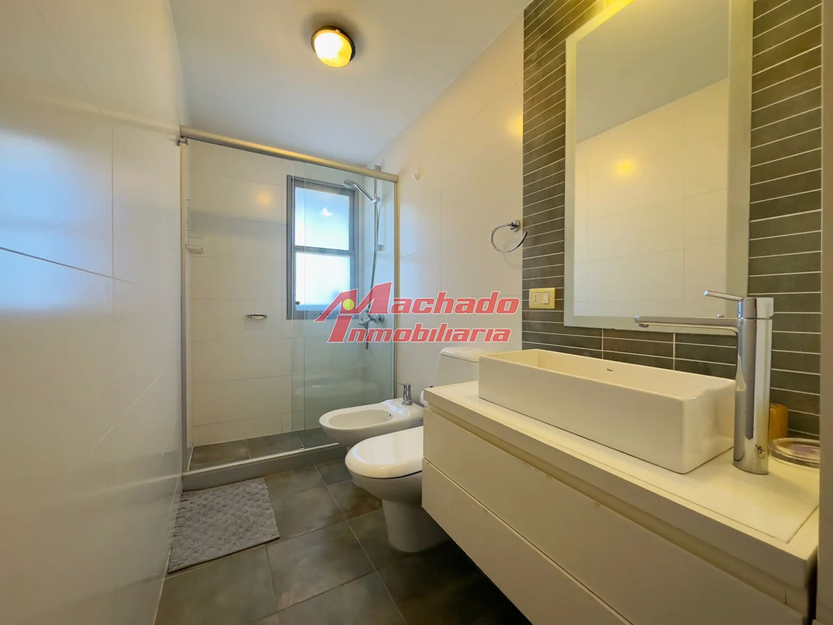 Muy lindo apartamento en primeras paradas de Playa Brava, cuenta con living comedor, cocina completa con lavadero, 2 dormitorios con 2 baños (1 en suite) y balcón con parrillero propio y garaje en subsuelo. La torre cuenta con servicio de mucama (opcional) servicio de playa en temporada de verano y gym.