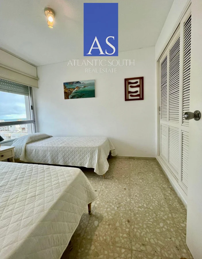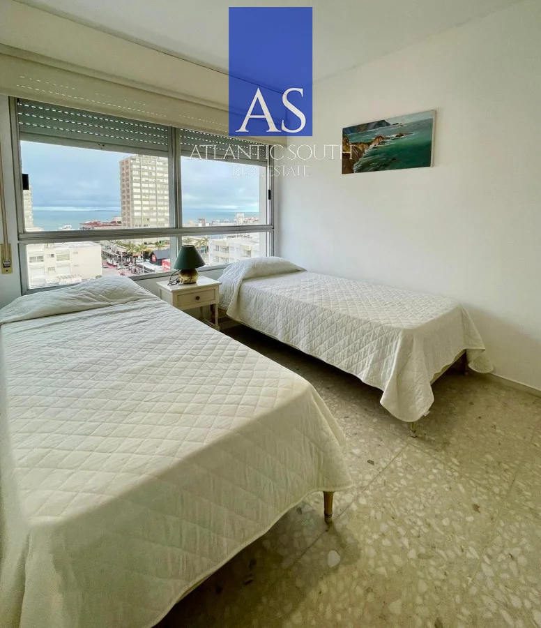 Se distribuye en living-comedor amplio y muy luminoso con acceso a una terraza que fue cerrada. Cocina definida con lavadero y comedor diario. Dormitorio principal en suite con salida al balcón. Segundo dormitorio con dos camas y vista a la Brava e isla de Lobos. Dependencia de buen tamaño con placard empotrado y baño completo. Cuenta con garage en subsuelo.