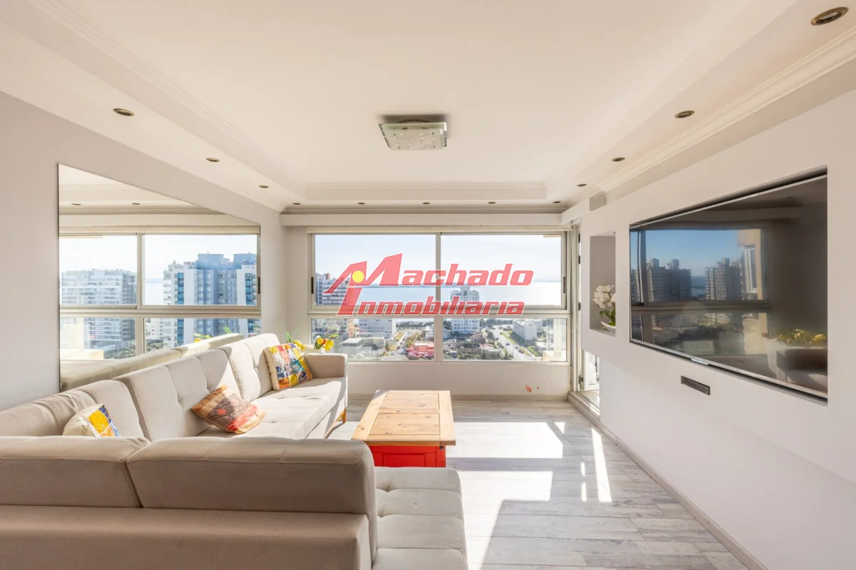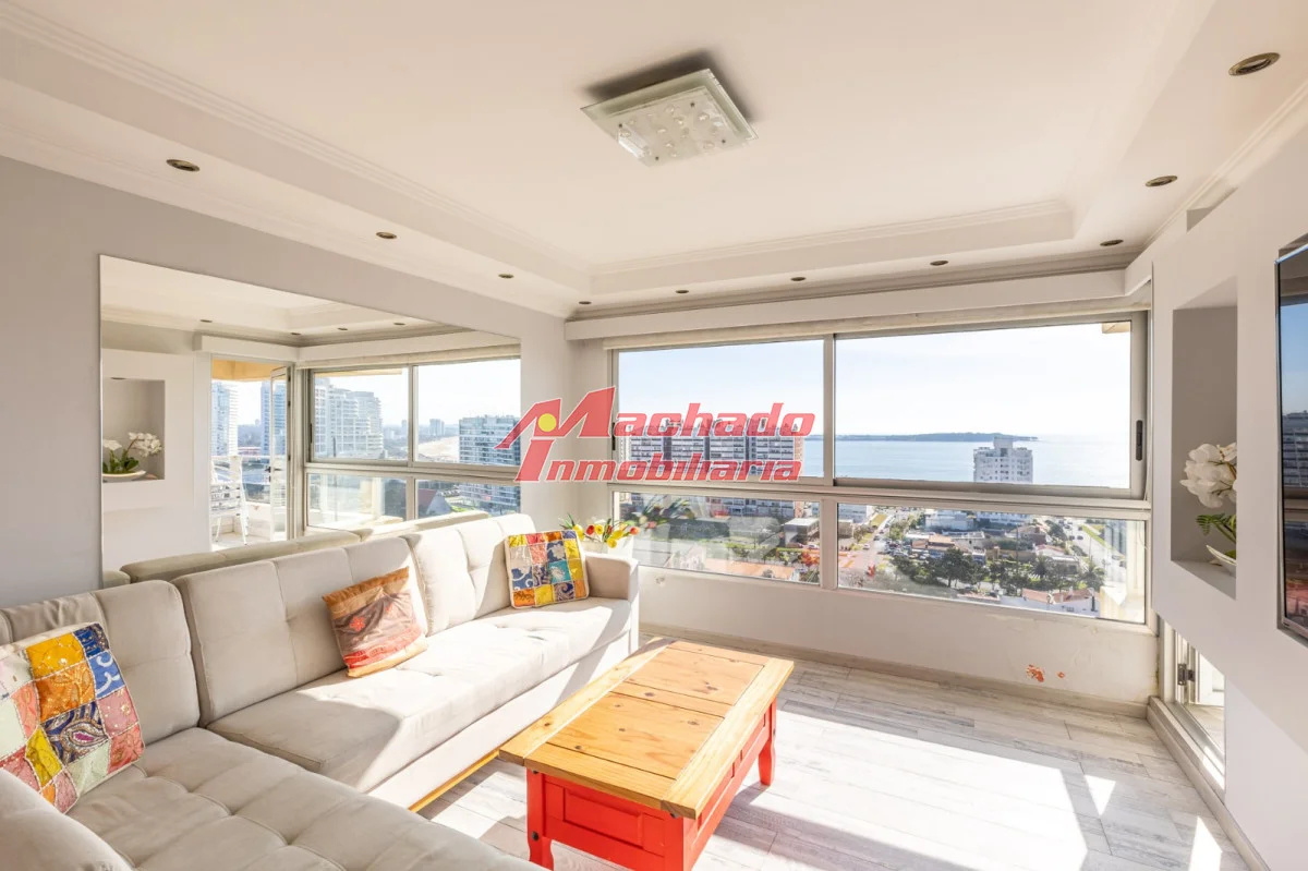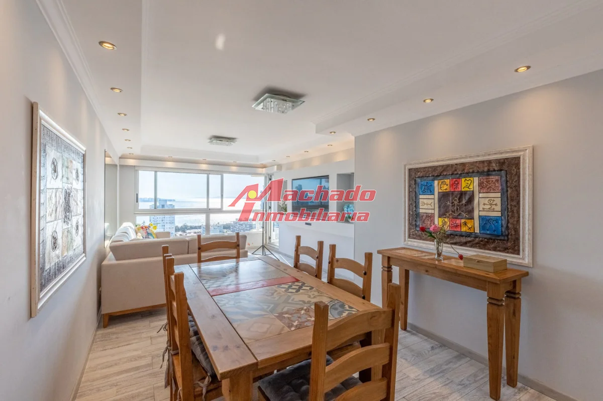 ¡Ven a disfrutar de la vida en Punta del Este! Esta increíble unidad de 3 dormitorios, 2 baños y 1 suite, ubicada a sólo 100 metros del mar, te ofrece la mejor vista al oeste. La cocina, el living comedor y los equipamientos como microondas, lavarropas y freezer te harán sentir como en casa. Además, disfrutarás de amenities como sauna, vestuarios, ascensor, recepción, portería, piscina abierta, gimnasio, servicio de mucama, mantenimiento, garagista, solarium, barbacoa, cancha de paddel, piscina climatizada cerrada, cancha de basquet y futbol, garage, jacuzzi y servicio de mucamas. ¡No te pierdas esta oportunidad! Gastos comunes: $37.800. Consulta con nuestros asesores.