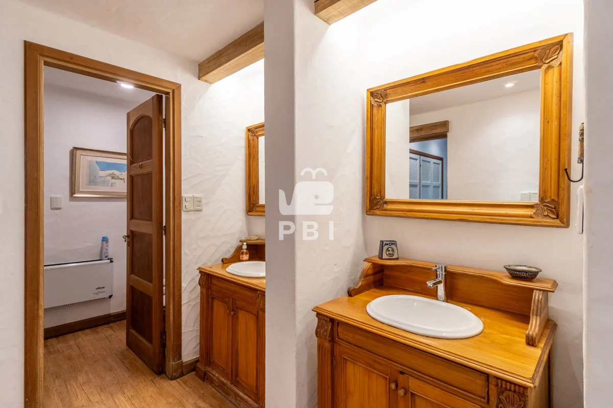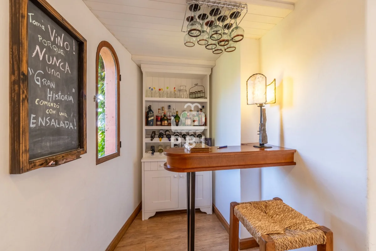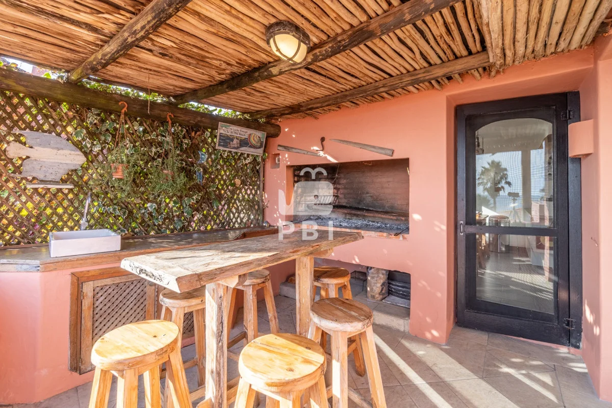 Posee dos plantas, en planta alta, cuenta con un dormitorio con baño completo, amplio living, exclusivas vistas, comedor integrado con capacidad para 10 personas, que conecta a la terraza balcón con una linda pérgola sitio ideal para disfrutar con la familia.