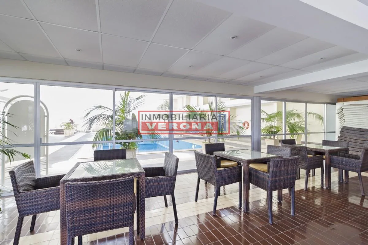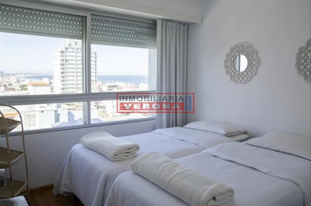 EN TORRE DE CATEGORÍA FULL RECICLADO. Excelente planta de 100 m2. Amplio living comedor con vista al Puerto, terraza cerrada muy luminosa, 2 dormitorios con amplios placares, 2 baños reciclados (ppal en suite), cocina súper equipada con todos los electrodomésticos, lavadero integrado con lavasecadora y garaje. Piso flotante y sommier en línea de dormitorios, cortinas automatizadas en todo el depto, gran tv smart en sala, Servicio de mucamas diario, wi-fi libre en el depto, gran piscina climatizada, sauna, barbacoas y sala de juegos.-