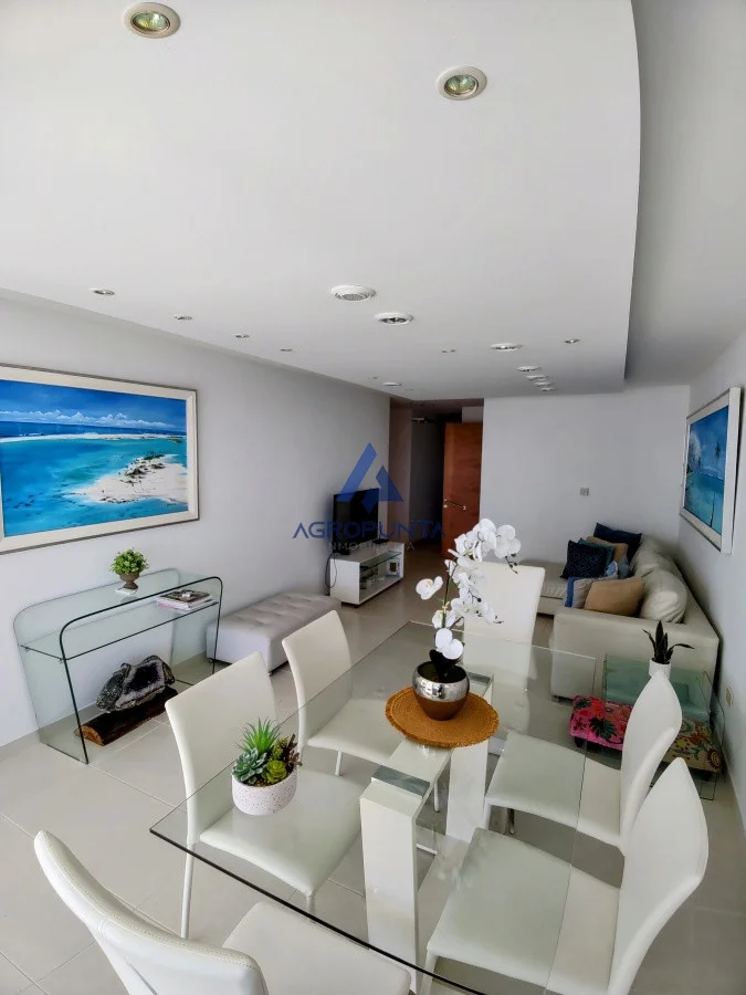 Espacioso living-comedor integrado al balcón terraza con vista panorámica y una personalizada mini-piscina.