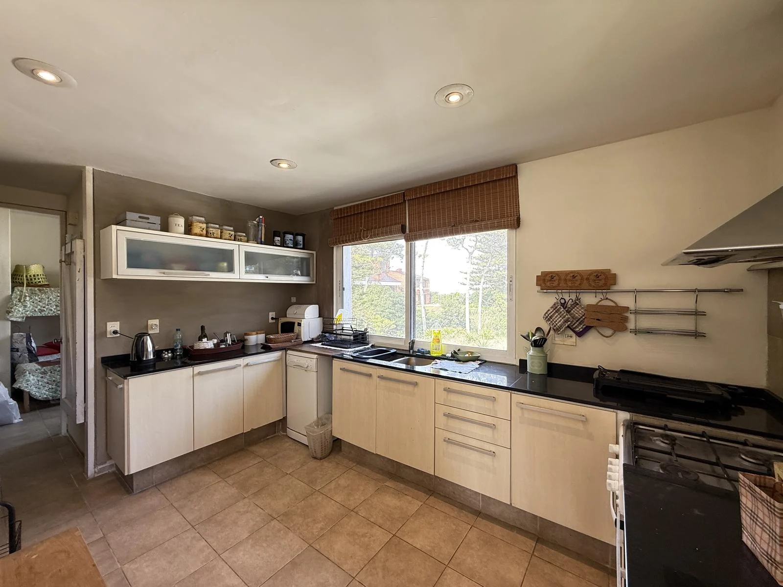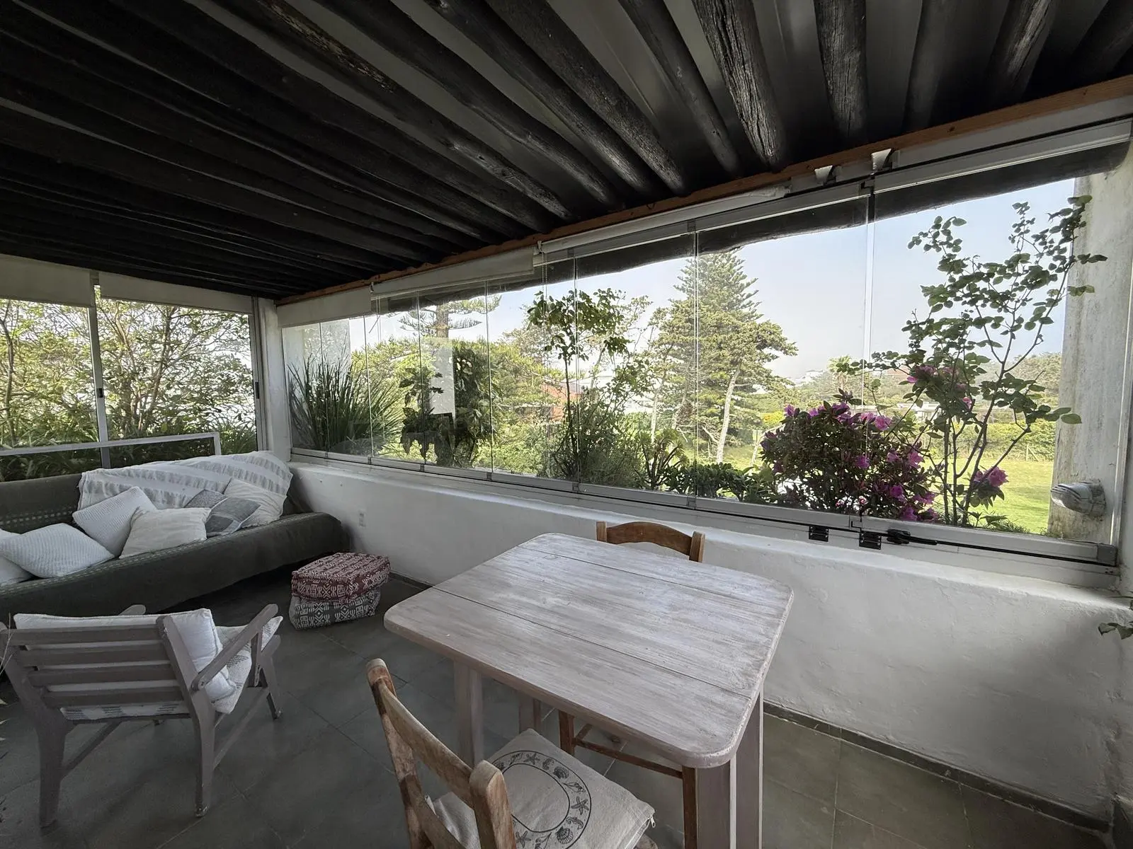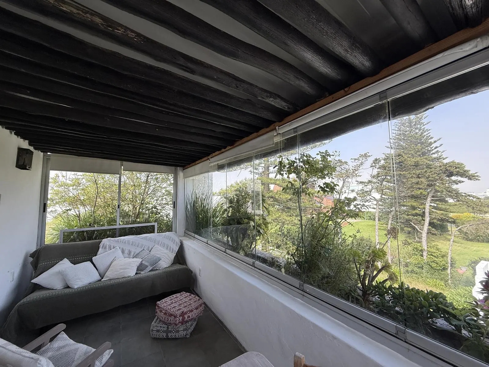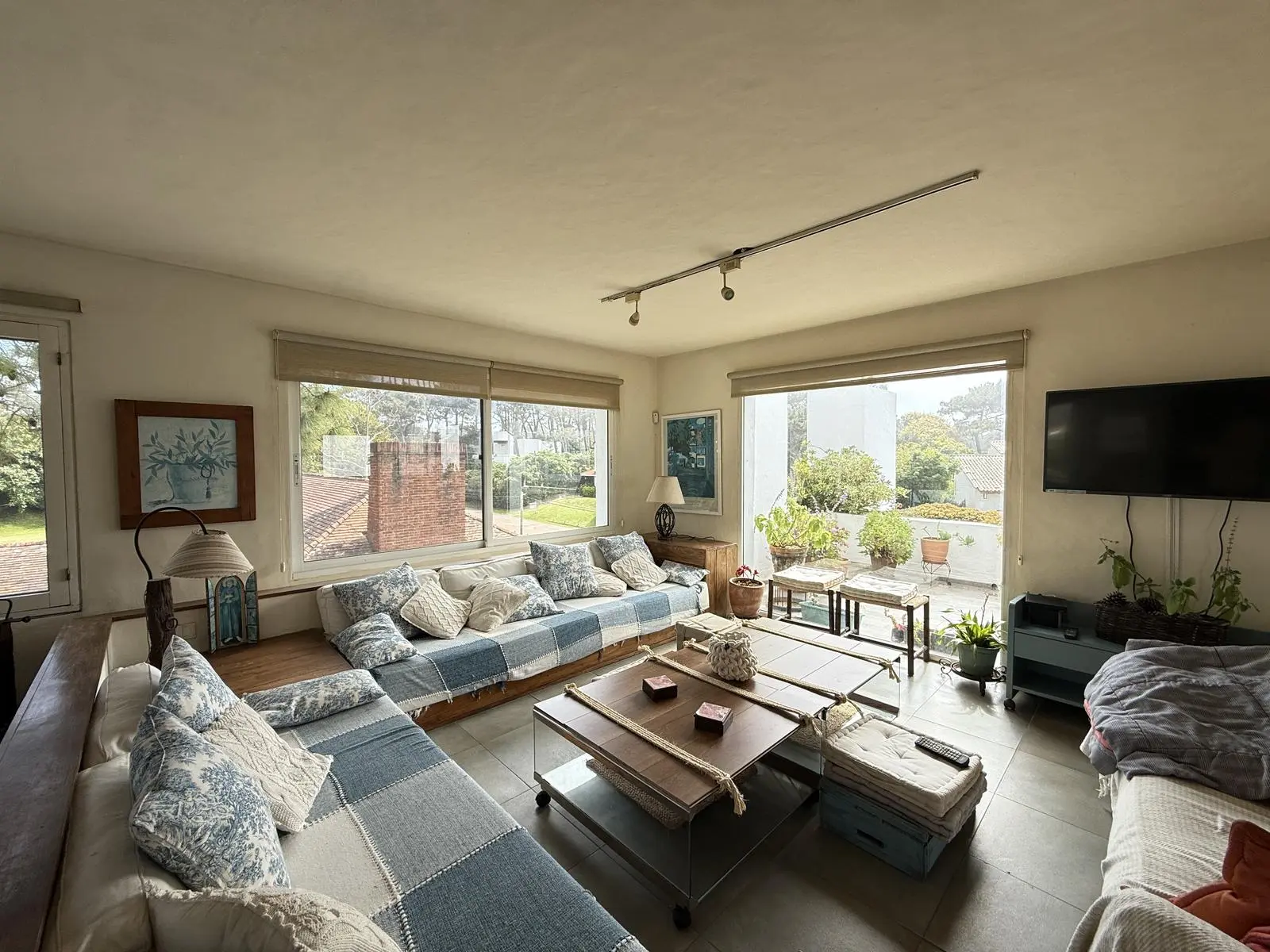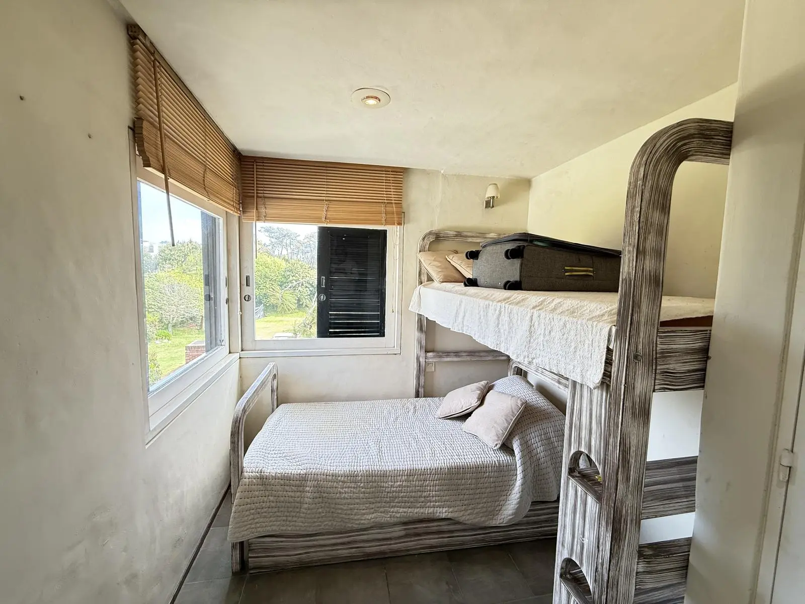 Primer planta: amplio living-comedor con estufa a leña, dos terrazas (una de ellas con parrillero), cocina definida muy luminosa y dormitorio de servicio con baño.