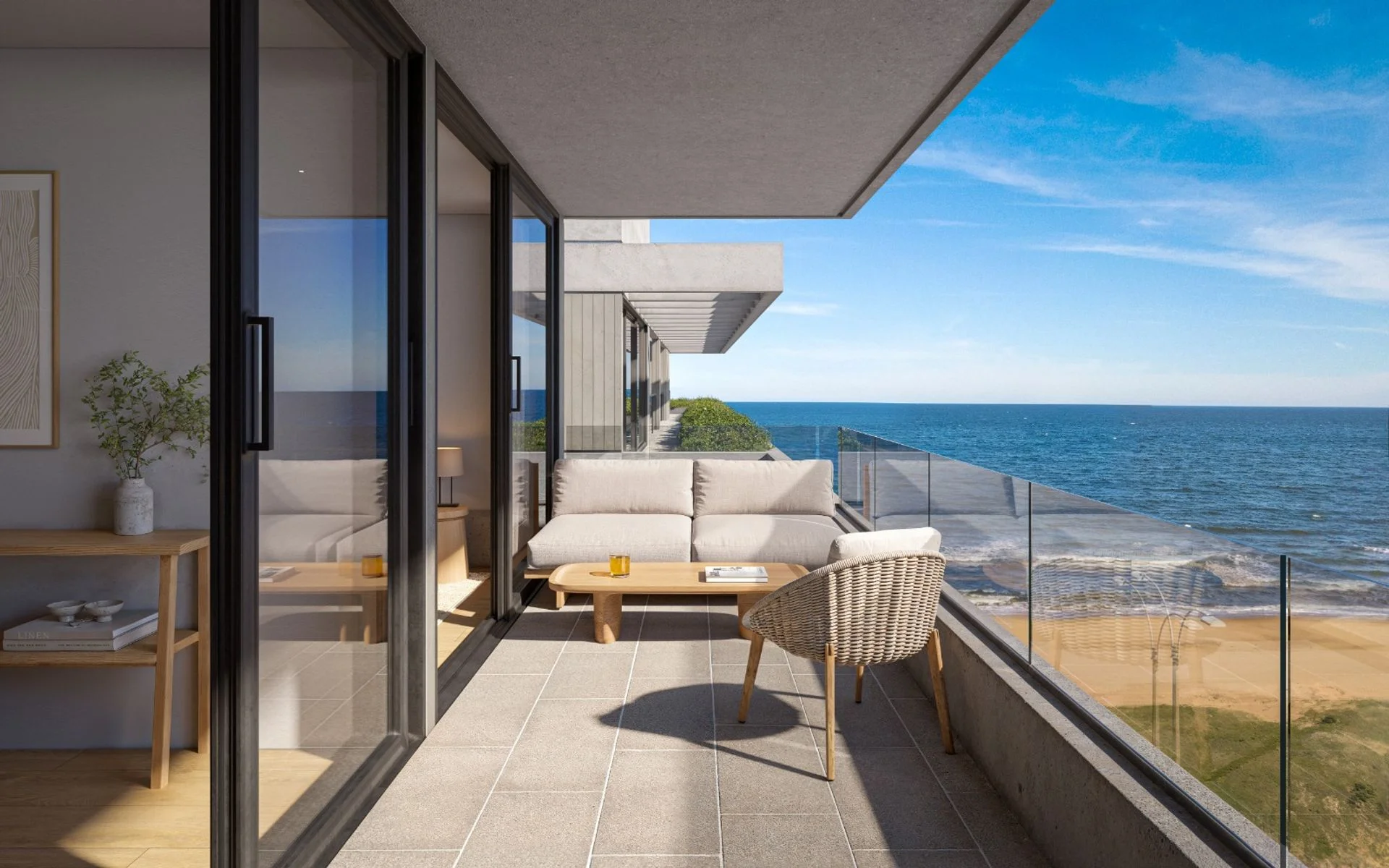- Balcones terrazas amplios de 2 metros de voladizo lo que permite colocar una mesa, sillones, sillas y reposeras.