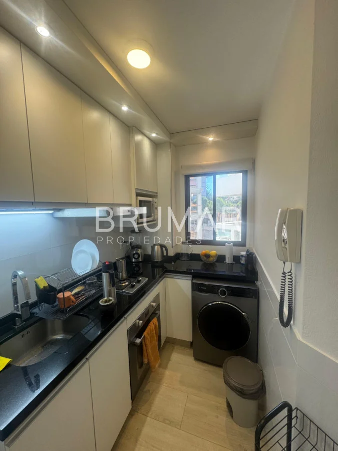 La propiedad cuenta con dos dormitorios y dos baños, uno de ellos en suite. Dispone de una cocina definida, muy bien equipada, y un living confortable con excelente luminosidad. Tanto la cocina como los baños fueron reciclados recientemente, presentándose en excelente estado, listos para ingresar.