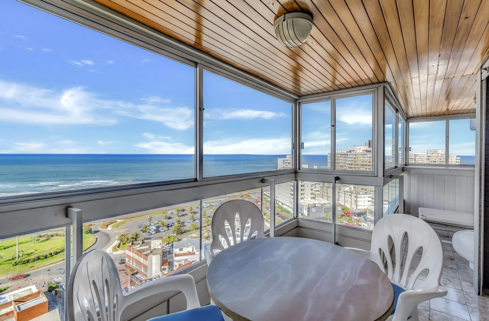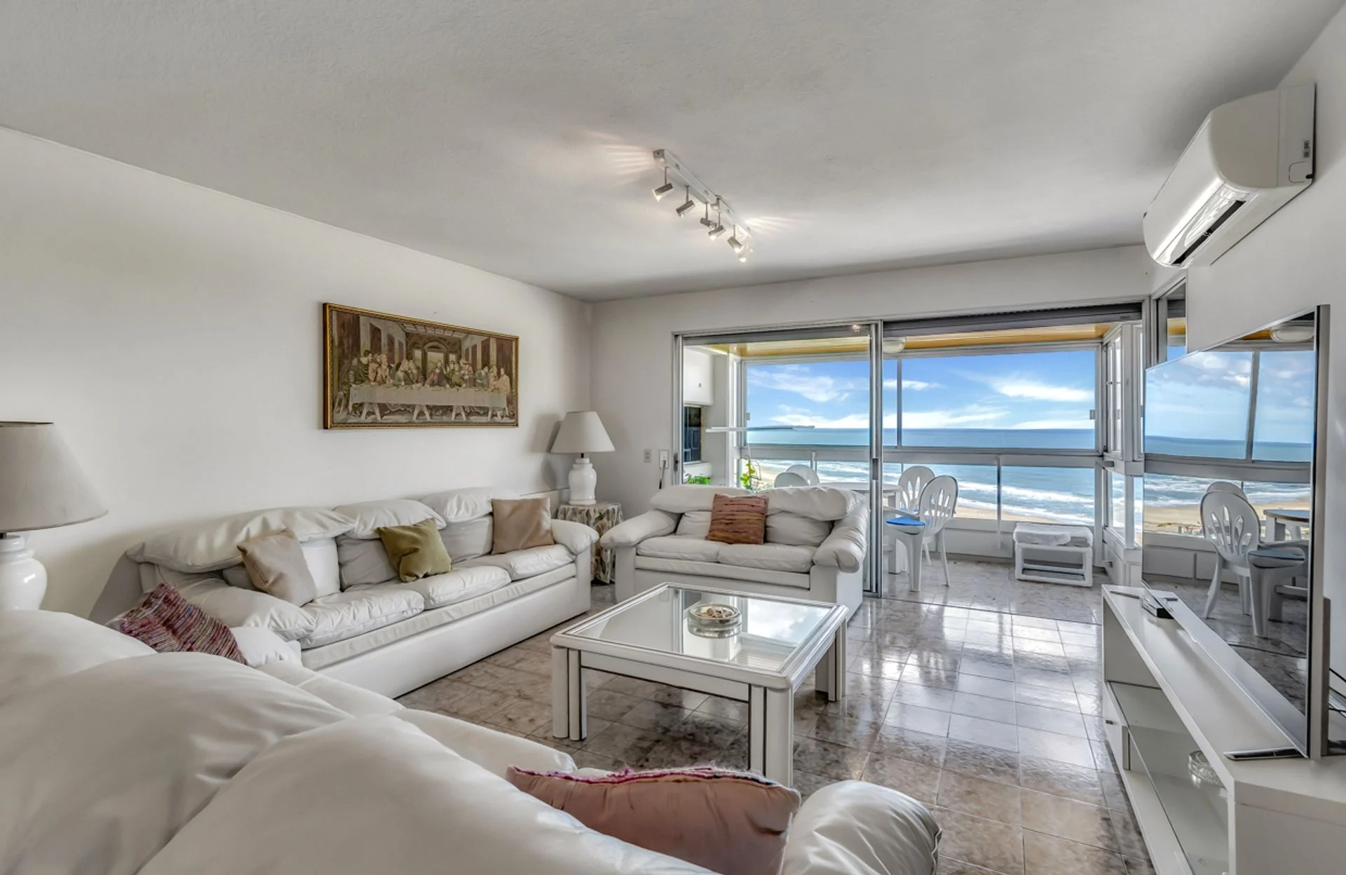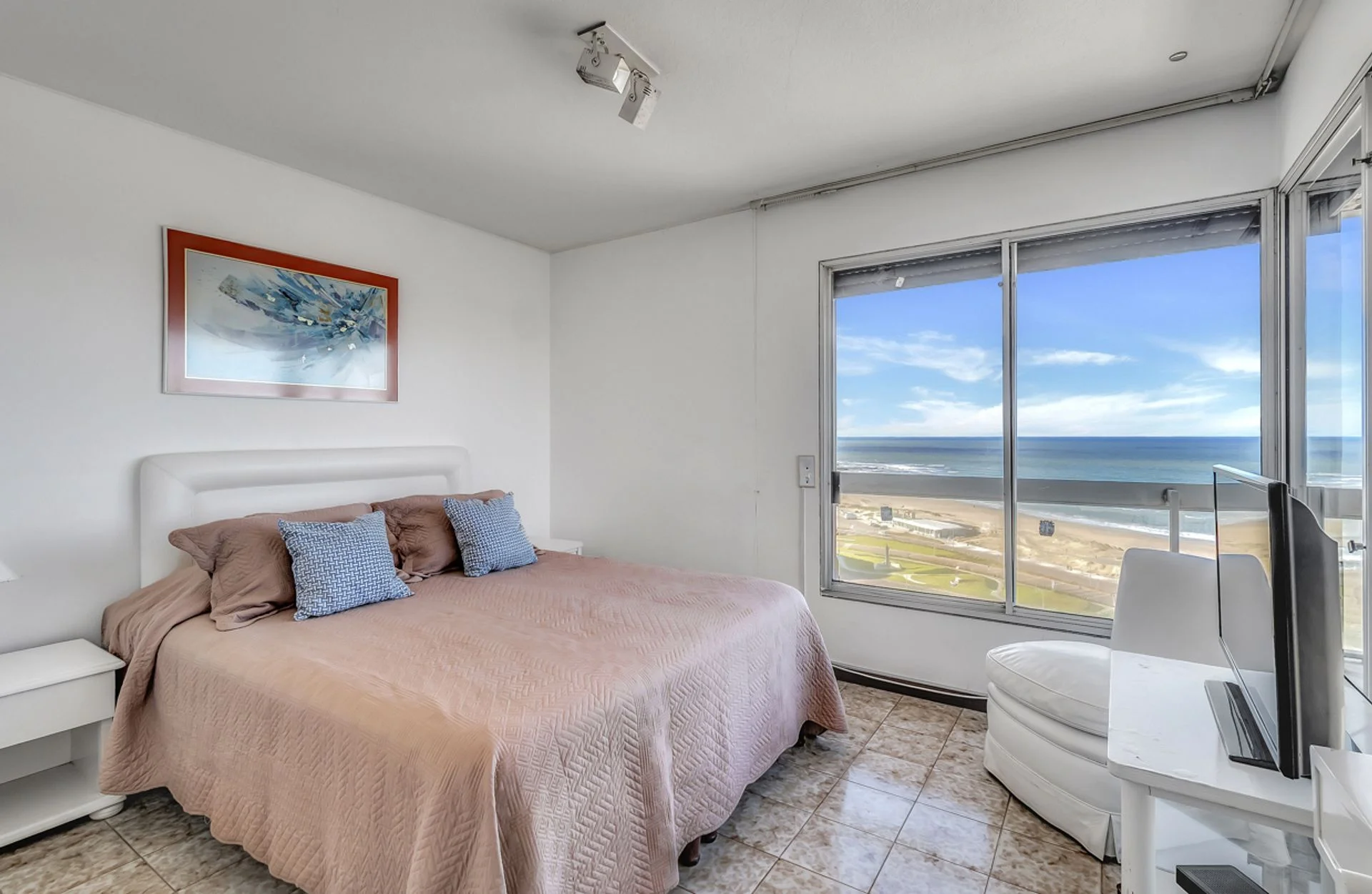 Departamento en venta en primera línea de mar de la Playa Mansa, Parada 1, ubicado en el emblemático edificio El Torreón. Piso alto.