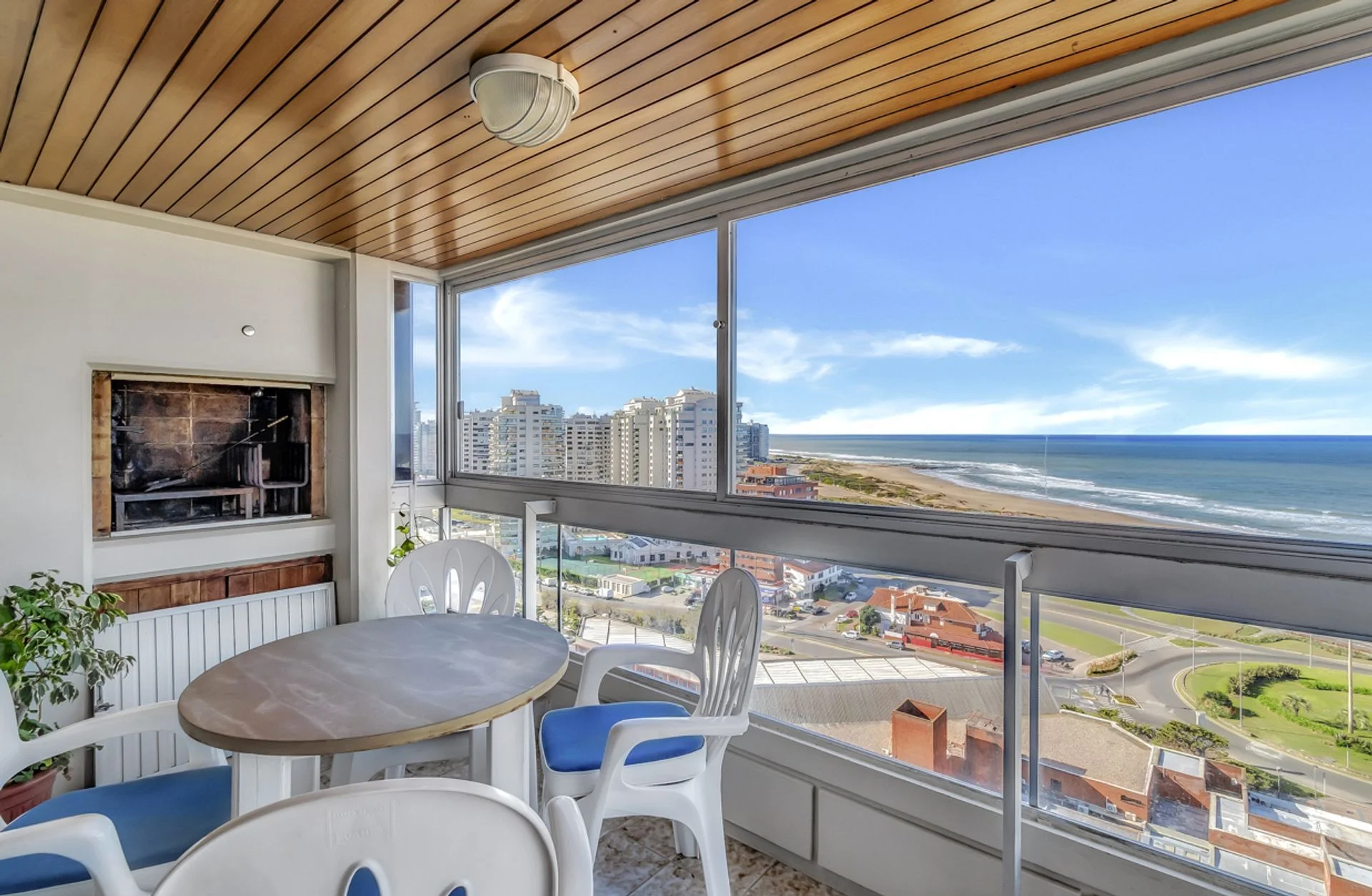 Amplia planta de 132 m2 cubiertos, según cédula catastral. Posee living comedor con aire acondicionado y salida a balcón terraza con vista a la Playa Brava, con parrillero propio. Cocina definida con comedor diario y salida a terraza lavadero. Dependencia de servicio completa. Toilette. Dormitorio en suite con vista a la Brava, con aire acondicionado y salida a la terraza; baño con mampara de vidrio. Otro baño completo. Dos dormitorios más, ambos con vista a la Playa Brava. Tiene garage en subsuelo.