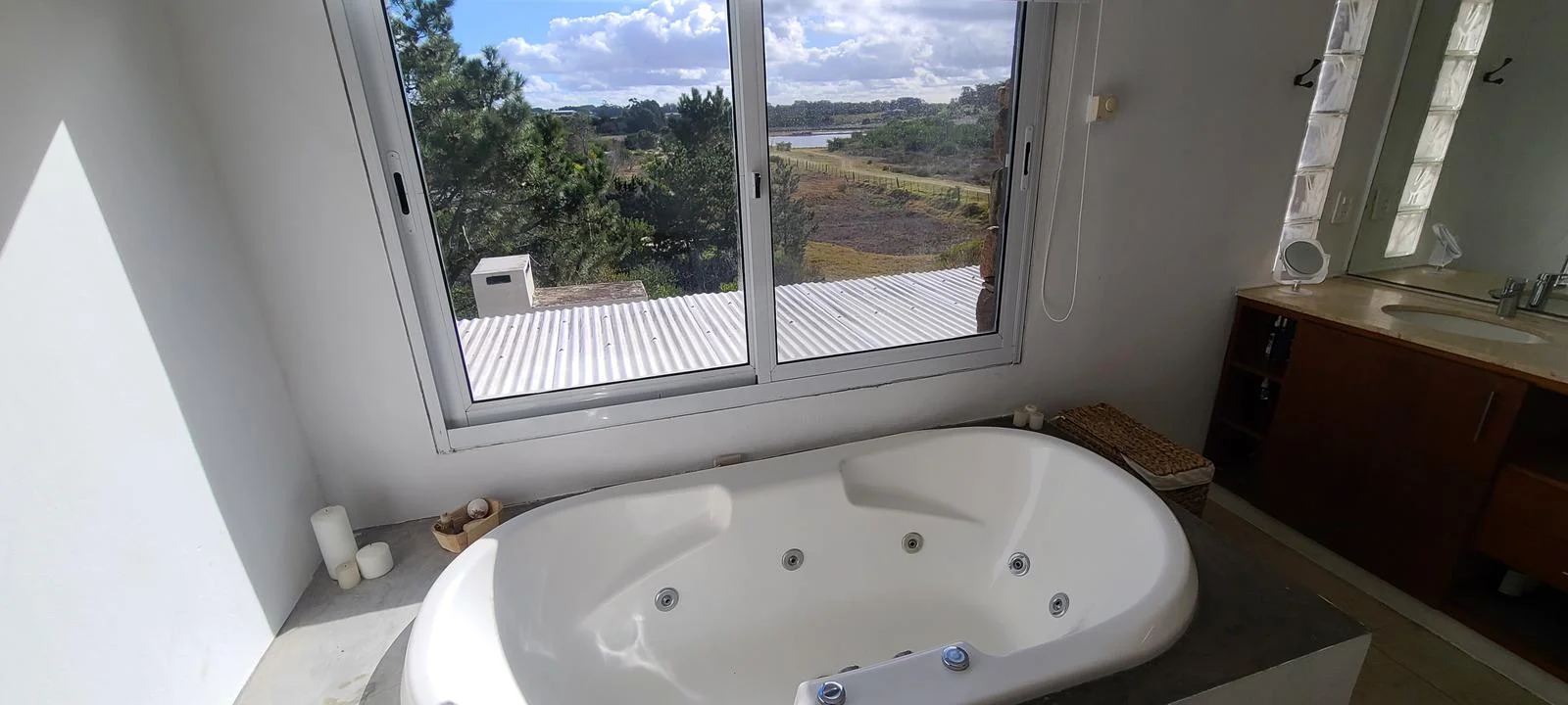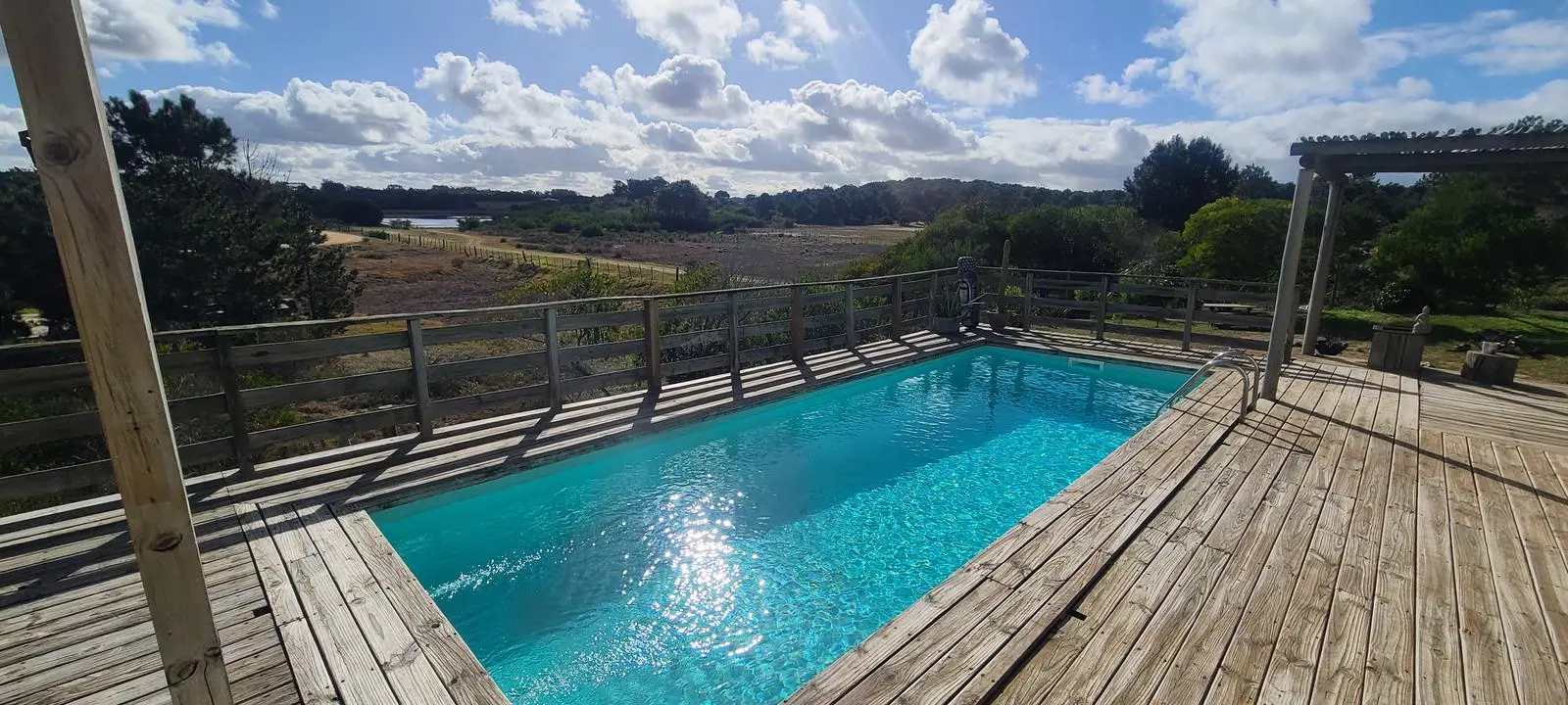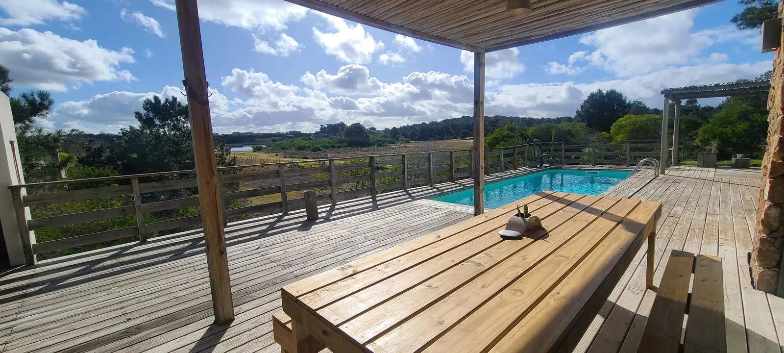 Consta de dos plantas, en el primer nivel el living y el comedor con cocina integrada al ambiente, un dormitorio en suite con cama doble y salida al deck, donde tenemos la piscina y la parrilla con áreas de descanso y solarium.