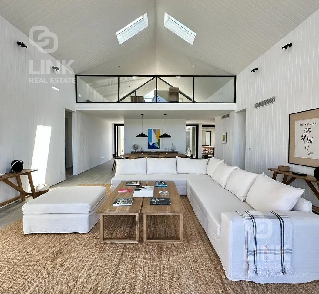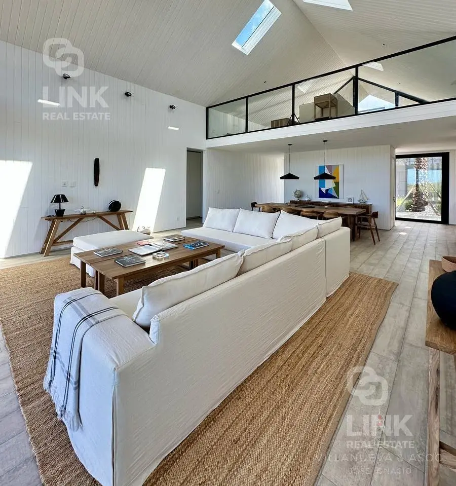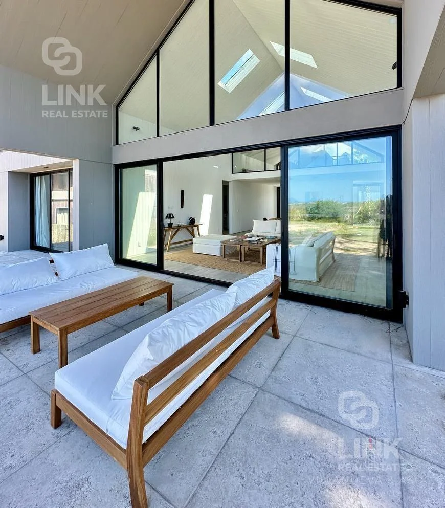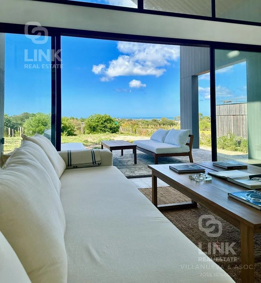 Living comedor al frente, totalmente volcado al mar, integrado a una galería cómoda y protegida. Jardín de gran escala, poco frecuente en esta ubicación.