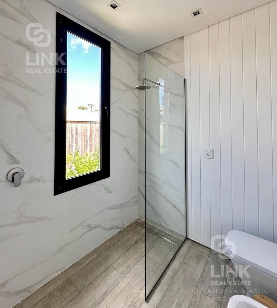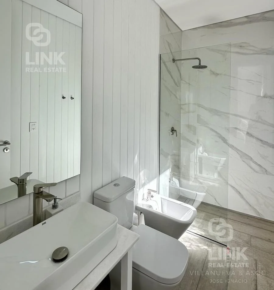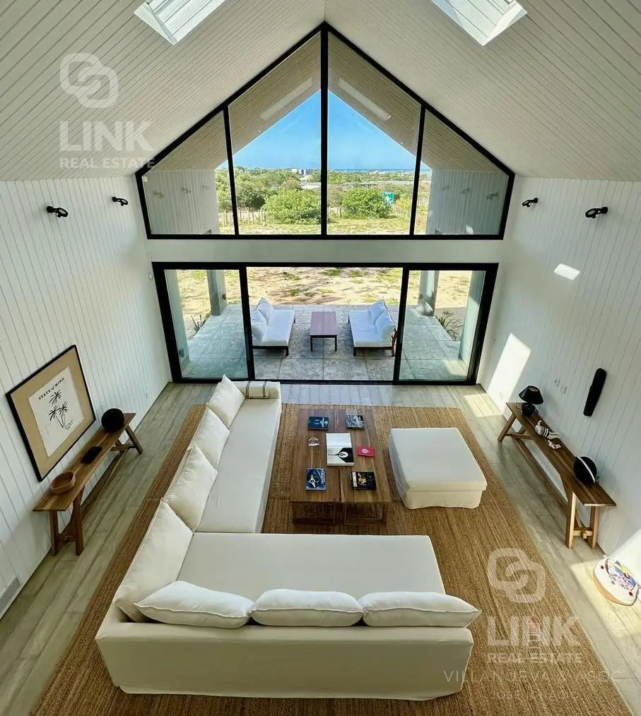 Living comedor al frente, totalmente volcado al mar, integrado a una galería cómoda y protegida. Jardín de gran escala, poco frecuente en esta ubicación.