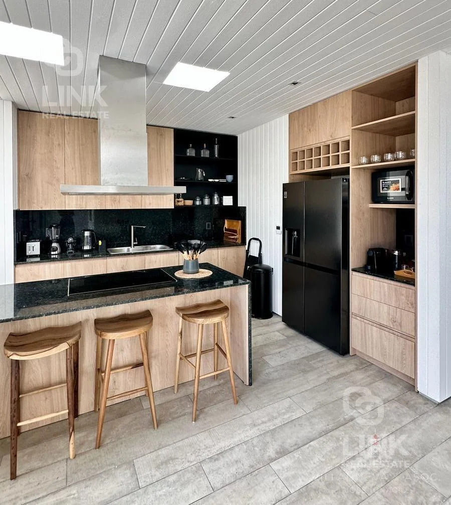 Cocina completa con despensa, funcional y bien vinculada al área social. Entrepiso con estar y vista al mar, ideal como playroom, TV o escritorio.