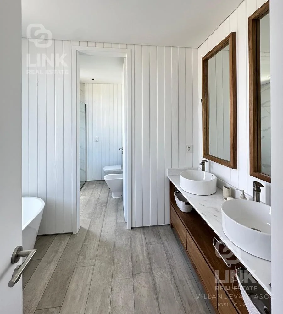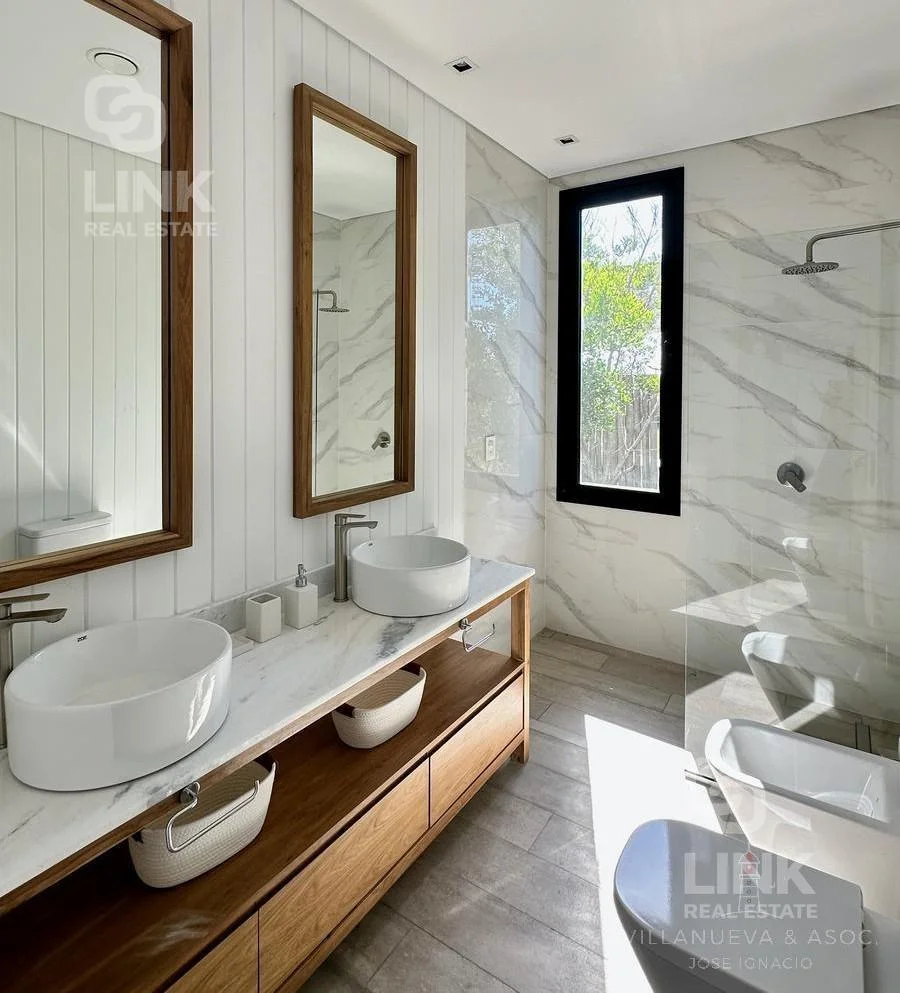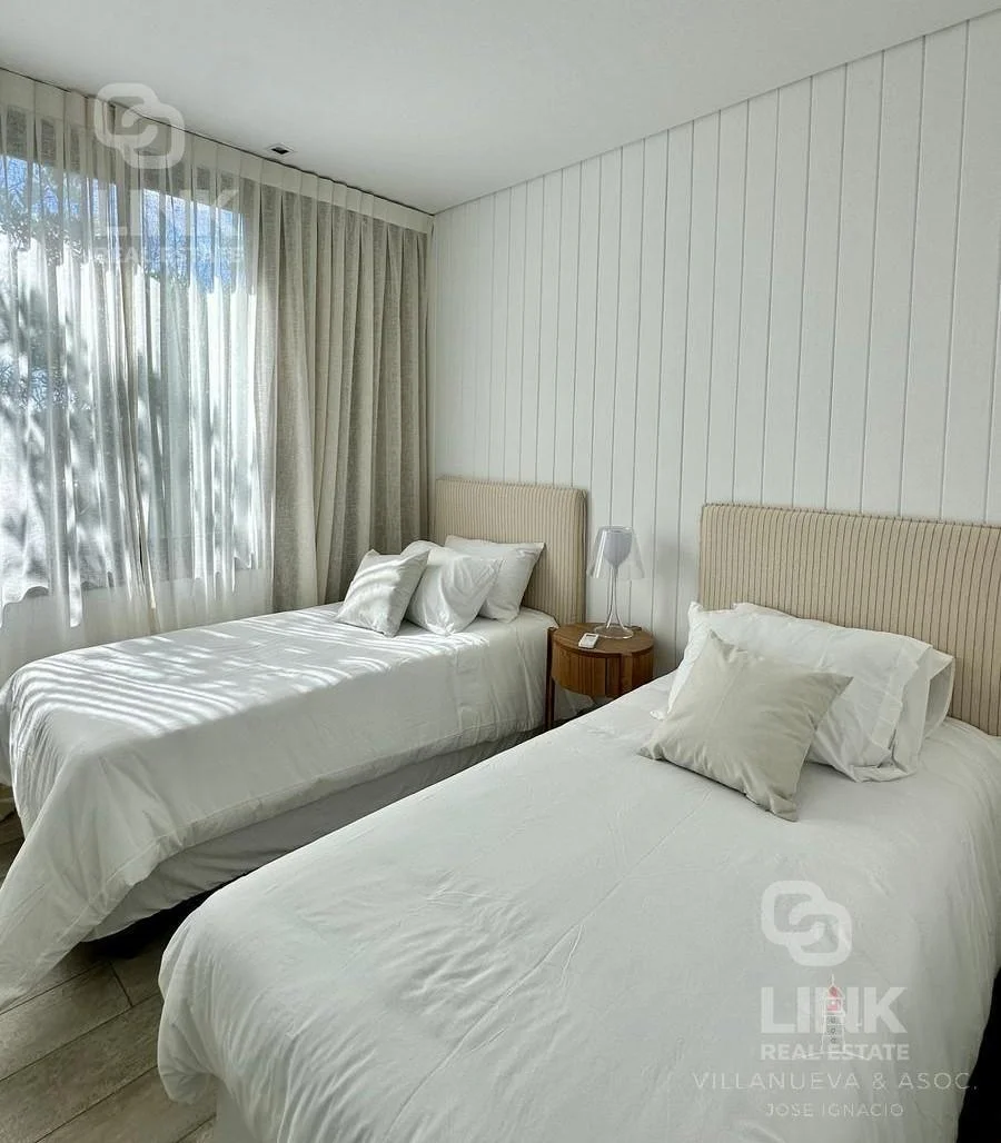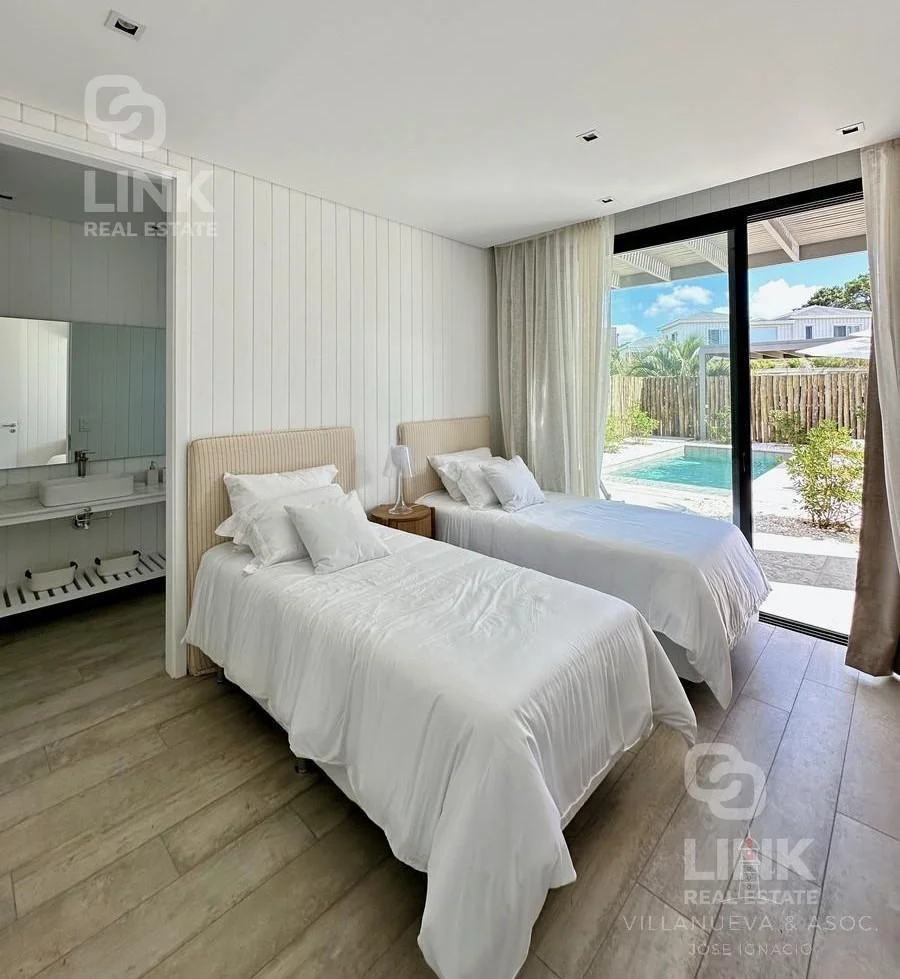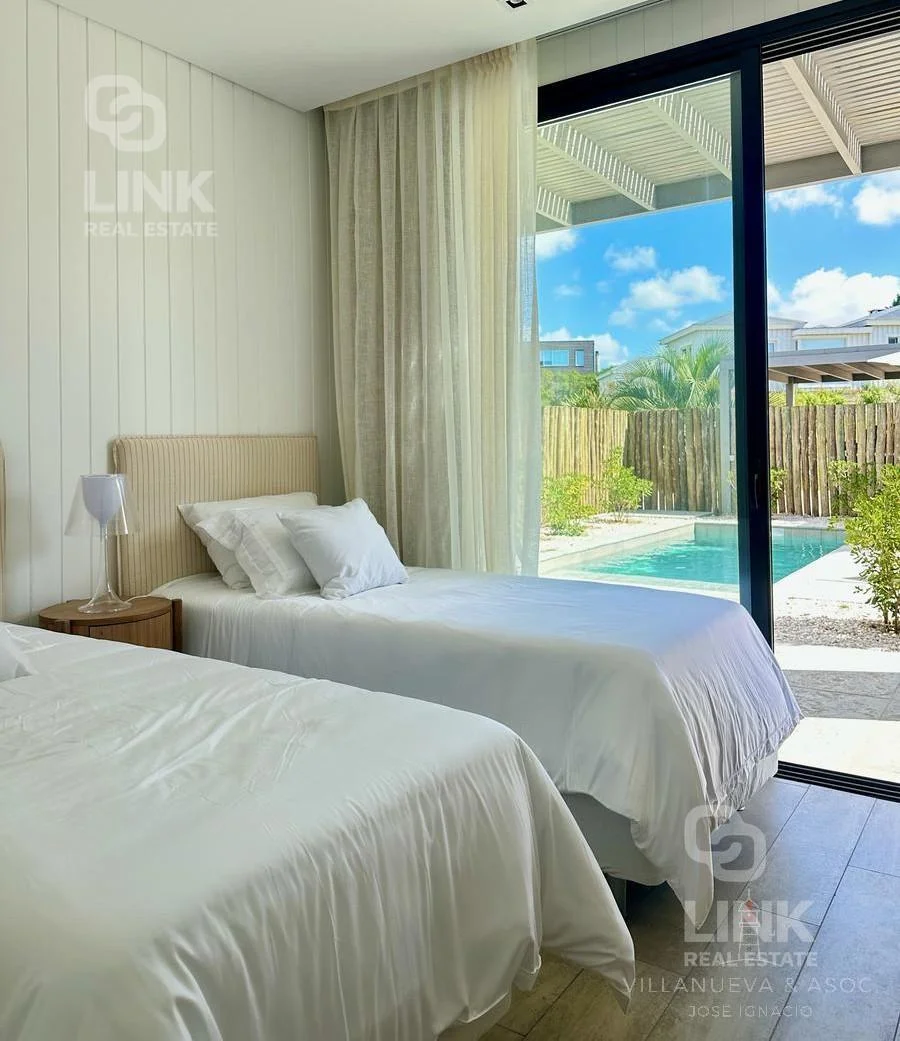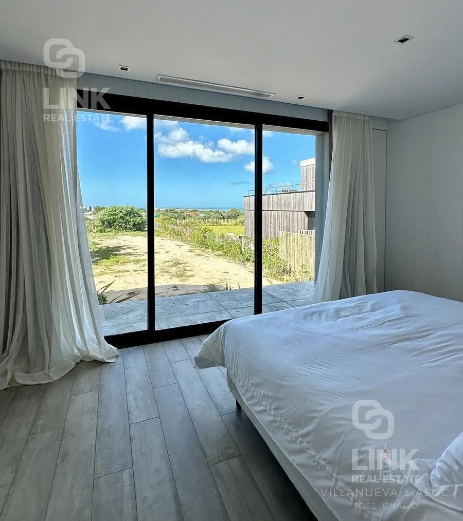 4 suites. Principal con terraza, vestidor y baño completo. Dos suites con vista al mar y una con salida directa a jardín y piscina.