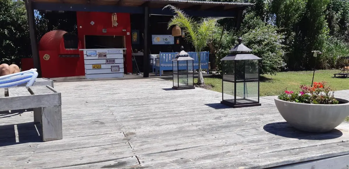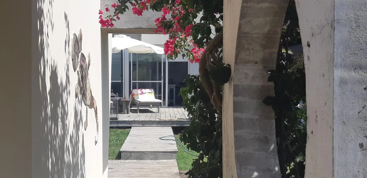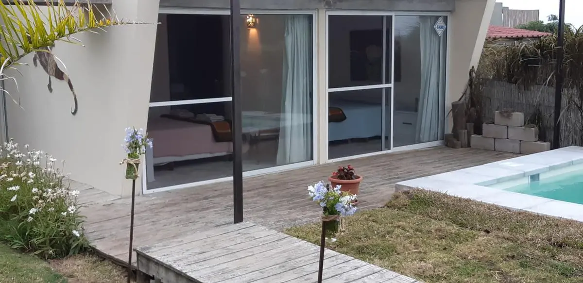 Jardín con parrillero y pergola y pileta, acceso al segundo bloque de la casa donde se encuentran dos habitaciones con un baño completo. Además cuenta con un tercer modulo que puede ser un cuarto dormitorio. Ideal para veranear.