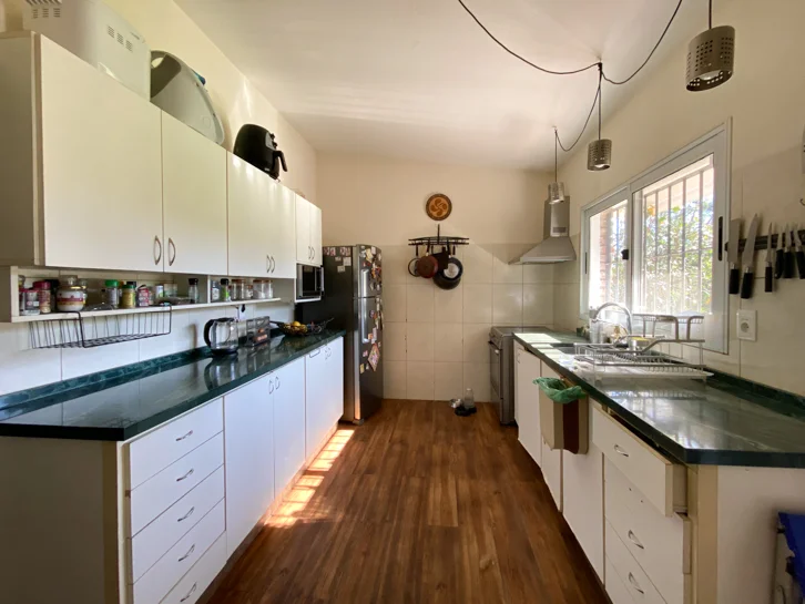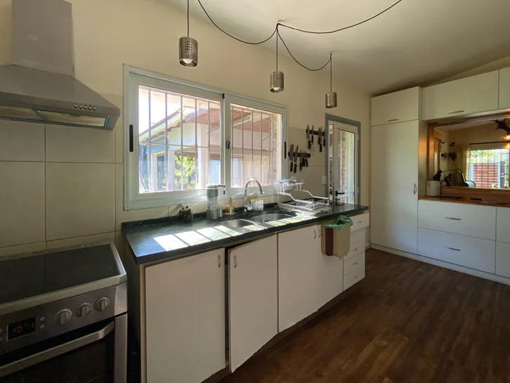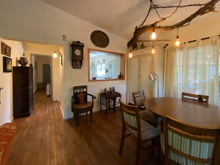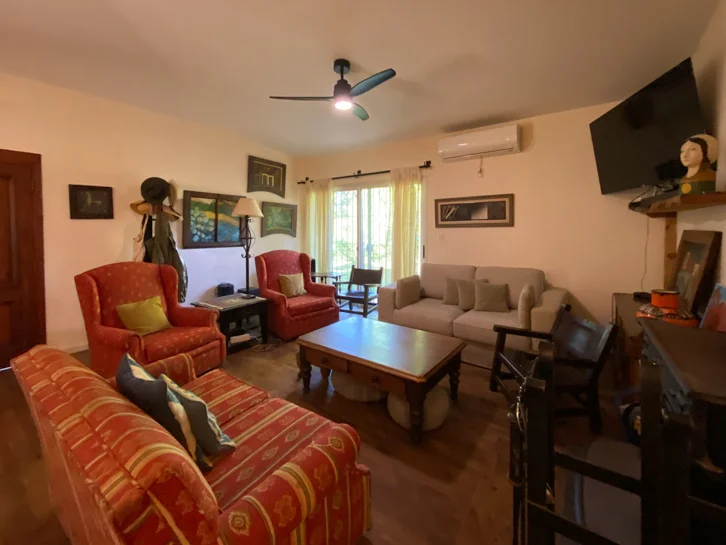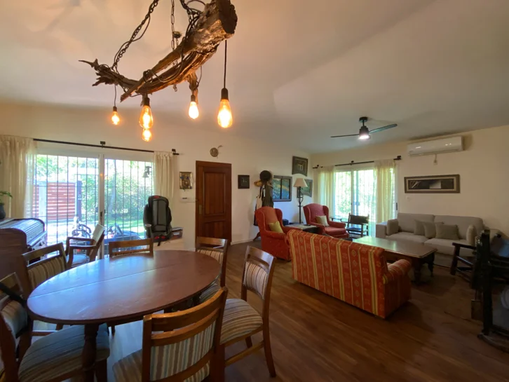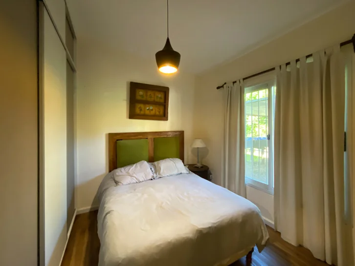 En el exterior, la casa cuenta con un dormitorio adicional también con baño en suite, parrillero techado, amplio jardín y piscina, todo enmarcado en un terreno de 1.215 m² totalmente cercado, que brinda privacidad y seguridad.