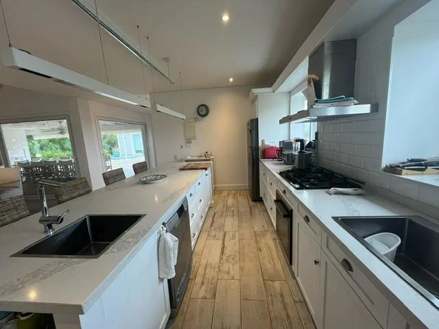 There’s a covered barbecue area, a pool, and an external TV room with its own bathroom.