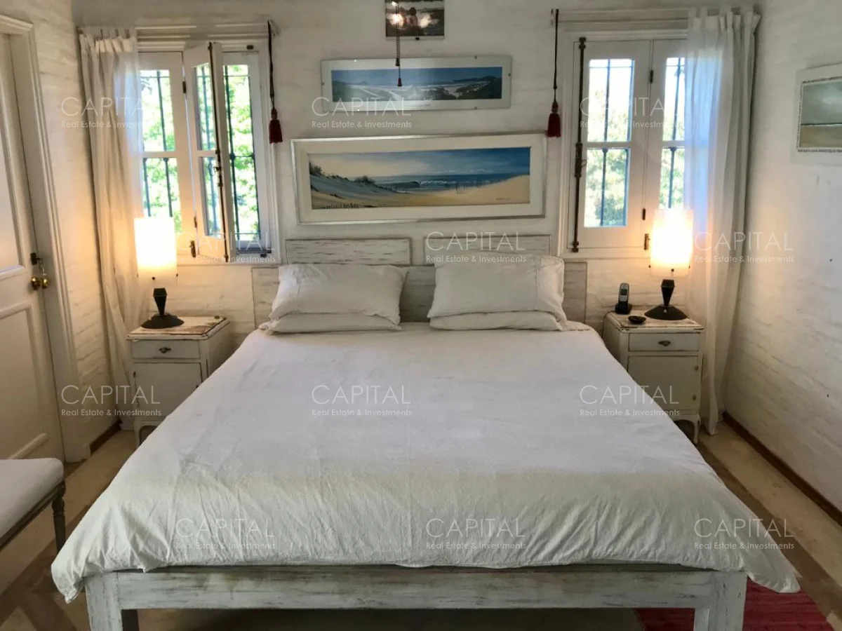 Excelente casa ubicada en el corazón de La Barra. Cuenta con 880 mts de terreno y 270 mts construidos en 2 plantas. Muy lindo jardín con galería con parrillero techado y piscina. En planta baja se encuentra living comedor con estufa a leña, cocina amplia súper luminosa con desayunador diario, una suite con cama matrimonial, toilette y dependencia de servicio completa con 1 cama. En Planta alta se encuentra la suite ppal ( matrimonial) y 2 dormitorios que comparten baño ( uno con cama cucheta con otra cama más y otro dormitorio con 1 cama single). Garage cerrado. Alarma, wifi, cable, ropa blanca, lavadero.