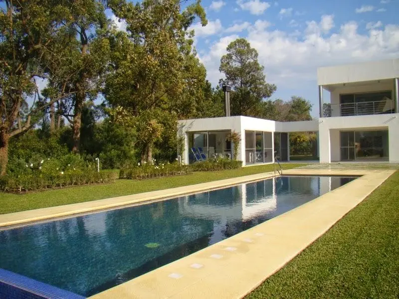 Excelente propiedad en El Golf. Esta moderna y funcional casa se desarrolla en dos plantas: PB: un amplio living-comedor con estufa a leña y vista al jardín, toilette, escritorio, estar con gran pantalla de TV, cocina, dependencia de servicio, lavadero y garaje para 2 autos. PA: master suite (terraza propia, baño con hydro) y 2 suites. Cómoda barbacoa cerrada, espectacular jardín e impactante piscina. Excellent property in El Golf neighborhood. This modern and functional house is on two floors: PB: a large living room with fireplace and garden, toilet, desk, room with big screen TV, kitchen, service room, laundry room and garage for 2 cars. PA: master suite (own terrace, bathroom with hydro) and 2 suites. Comfortable closed barbecue, spectacular gardens and stunning pool.