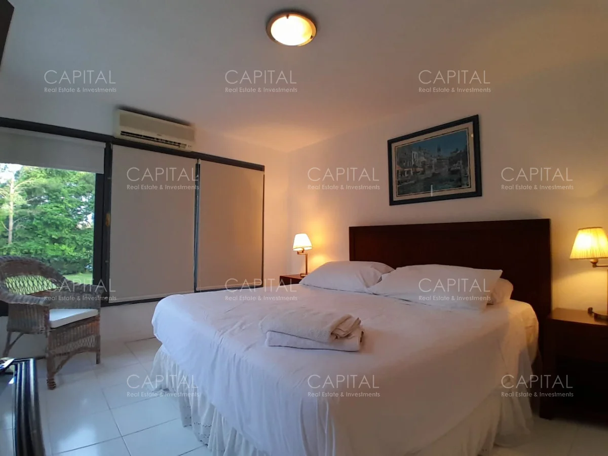 En un lote de 3400 m2 esta espléndida propiedad cuenta con un espacioso living con hogar a leña de alto rendimiento y grandes ventanales que permiten disfrutar el jardín desde el interior de la casa. Comedor diario y estar. Cinco dormitorios en suite, más toilette y escritorio. Amplia cocina definida, completamente equipada.