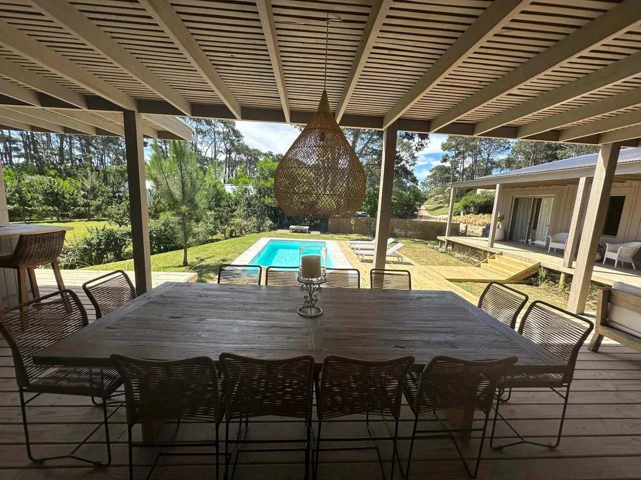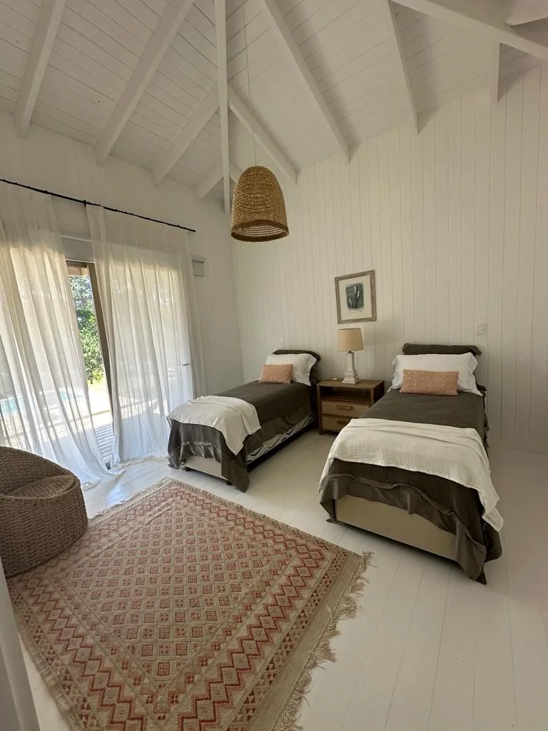 Espectacular casa a estrenar en barrio cerrado Pinar del Faro a 2 de José Ignacio. La casa tiene 4 dormitorios en suite (3 con cama matrimonial y 1 con dos camas individuales).