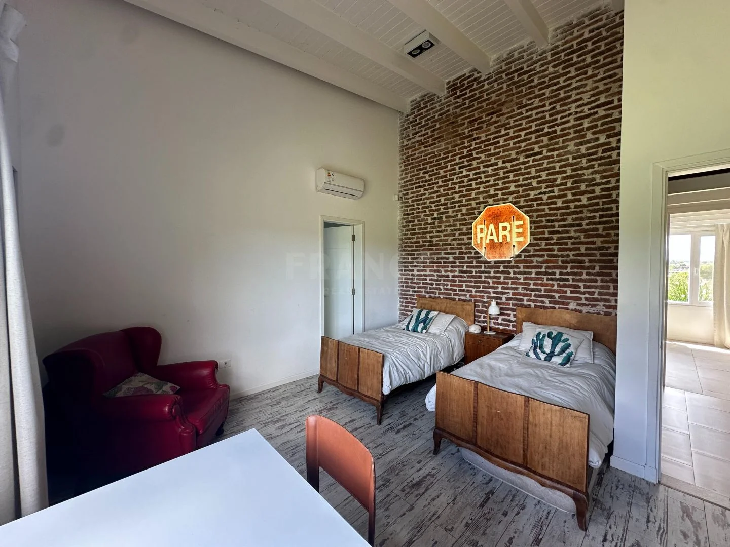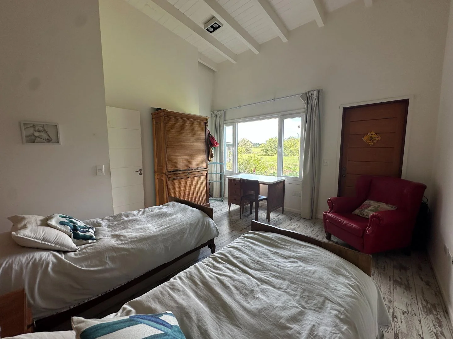 Cuenta con un total de 5 dormitorios, distribuidos en una casa principal donde se encuentran cuatro dormitorios y una segunda casa de huéspedes la cual esta diseñada como un espacio independiente con cocina completa, living comedor, baño y dormitorio.