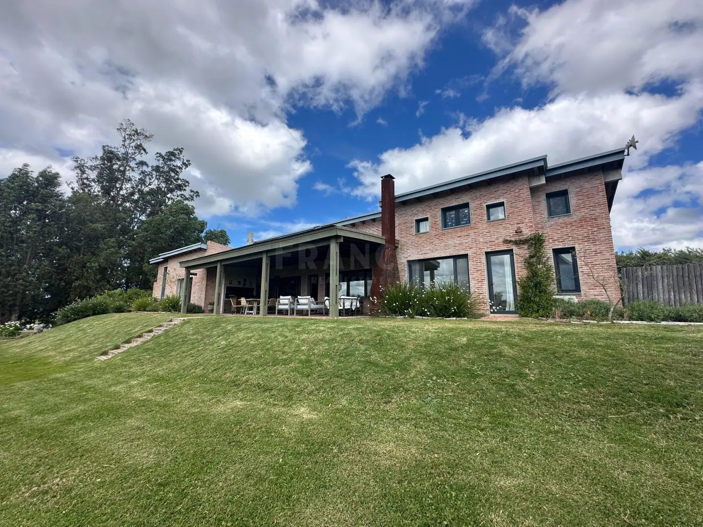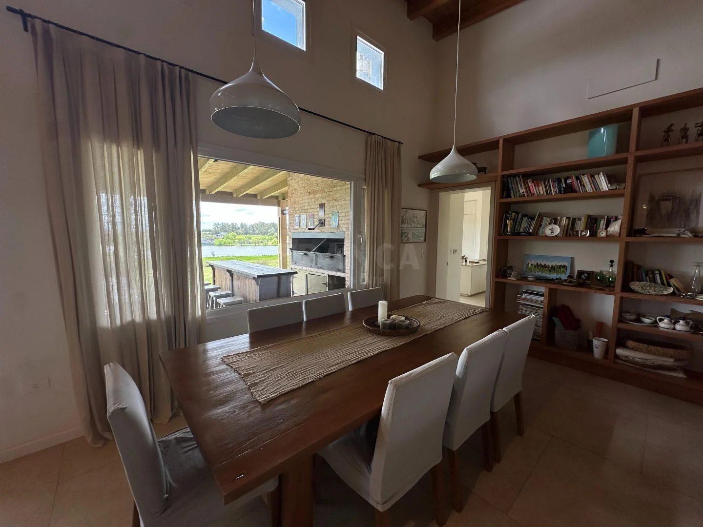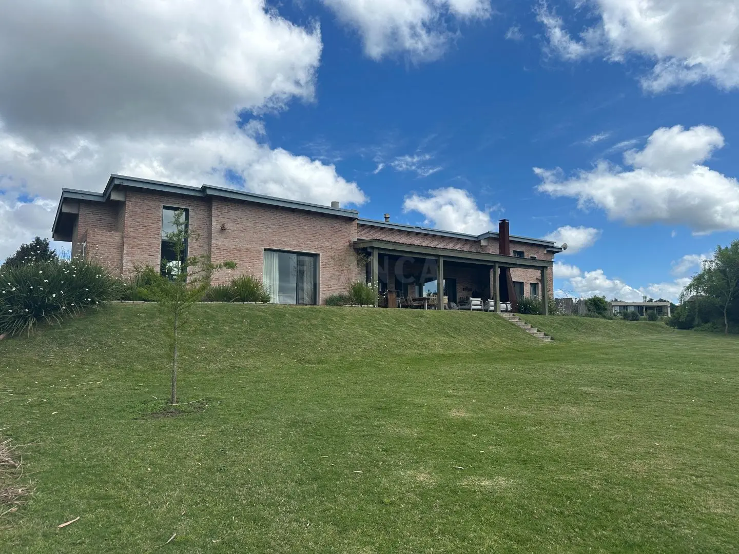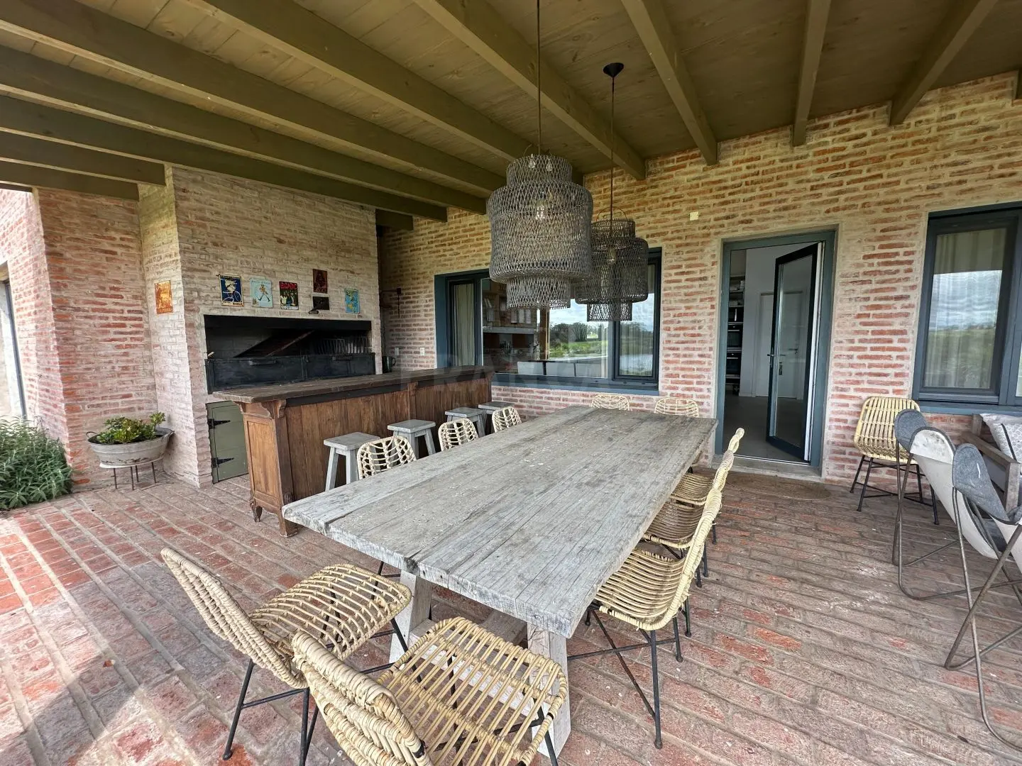 En el exteriro la casa principal cuenta con amplias galerías, donde se encuentra el sector de parrilla con mesa de comedor para 10 personas y un amplio livign exterior ideal para los días cálidos de verano.