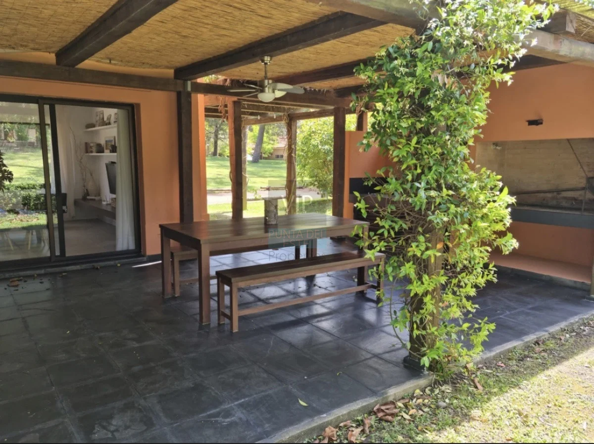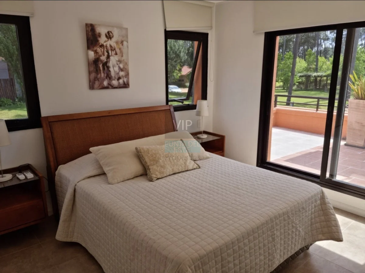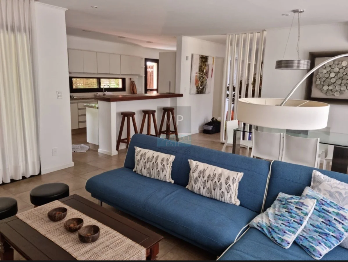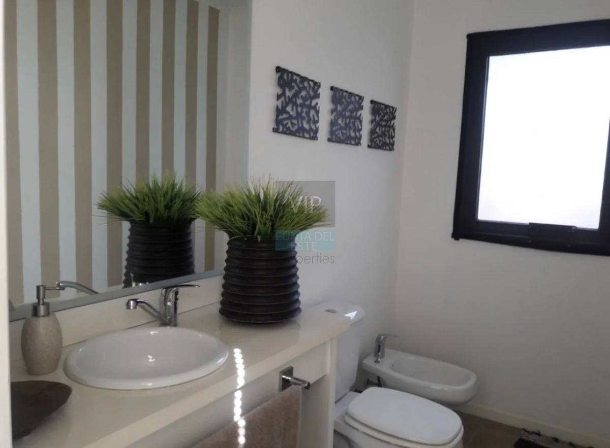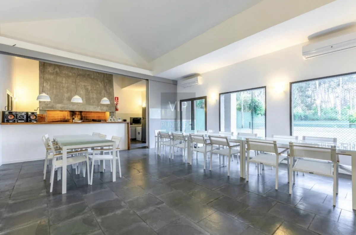 Hermosa casa en Barrio privado en Pinares a metros del mar. 2 dormitorios (1 suite) y 2 baños + Toilette. Living-comedor con hogar, parrillero y cochera. Amenities: Piscina, salón de uso múltiples, garita de guardia, cancha de tennis y padel. Referencia Interna : Tera-1512