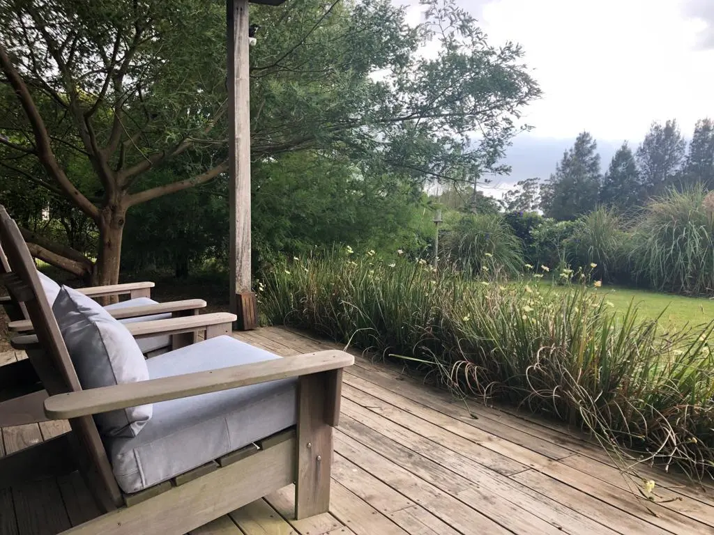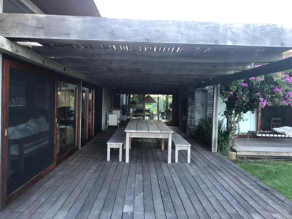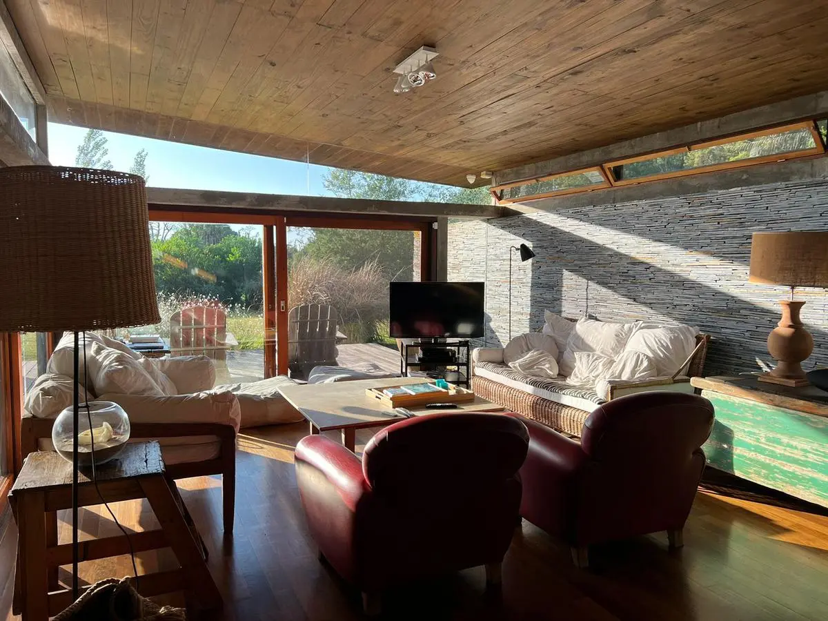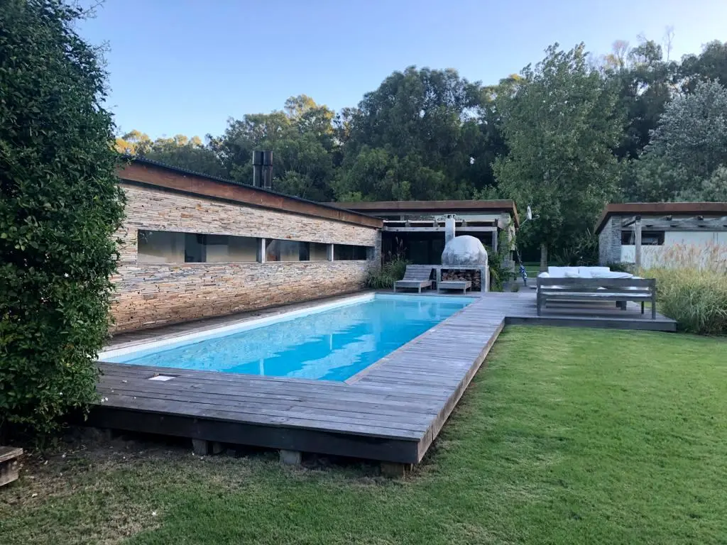 La casa cuenta con una cocina moderna y completamente equipada, y un sector de dormitorios que incluye tres habitaciones. Dos de ellas están conectadas por amplias puertas corredizas y comparten un baño, mientras que la suite principal dispone de baño privado y una cómoda galería techada.
