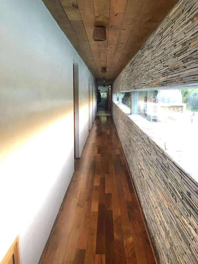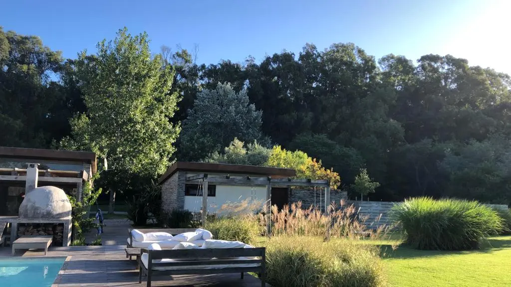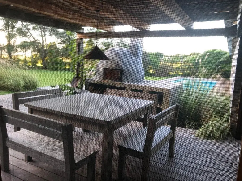 El casco principal recibe con un luminoso living comedor, donde una estufa central de alto rendimiento aporta calidez y confort, además de ofrecer hermosas vistas al exterior. Desde aquí, se accede a una galería techada, diseñada en dos sectores separados por una elegante puerta corrediza. En el primero, un parrillero y un comedor exterior invitan a disfrutar de reuniones al aire libre; en el segundo, un horno de barro complementa otro acogedor comedor exterior con acceso directo a la piscina y su deck.