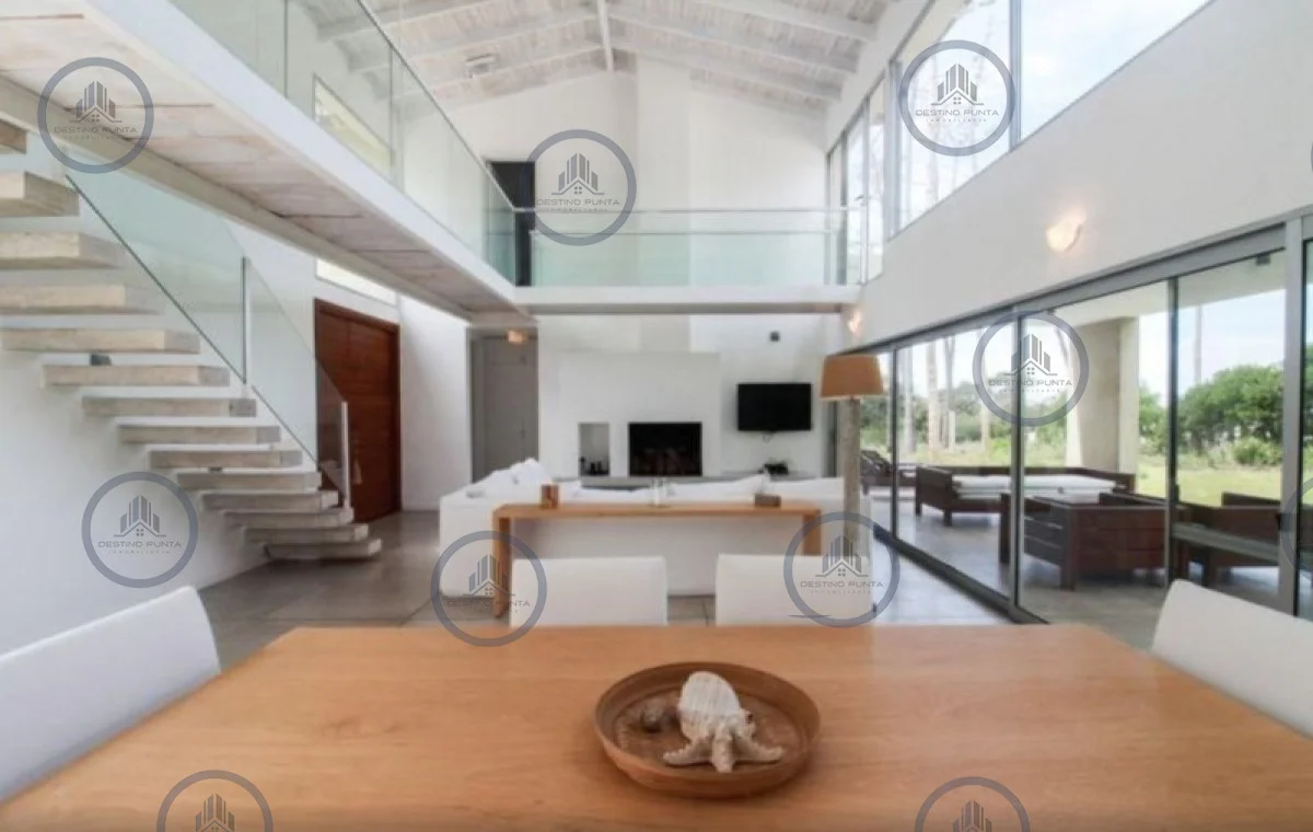 Distribuida en 2 plantas. Cuenta con Living-comedor de doble altura con hogar a leña.