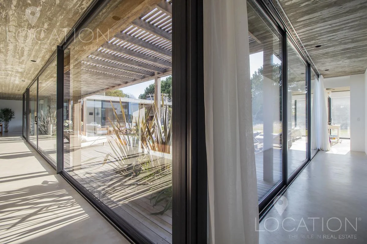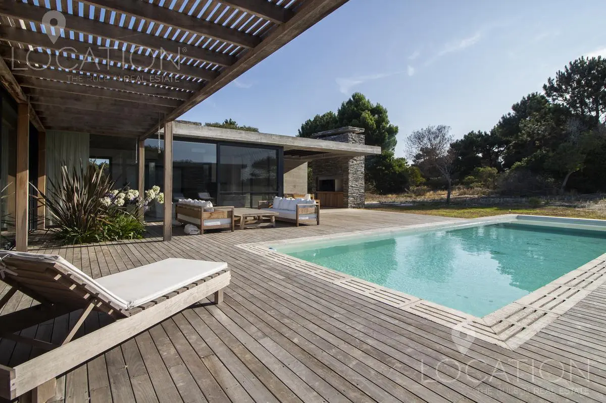 En el ala de la izquierda, cocina independiente, con amplio living comedor y salida al parrillero, toda la propiedad se encuentra desarrollada en el entorno de la piscina y solarium.