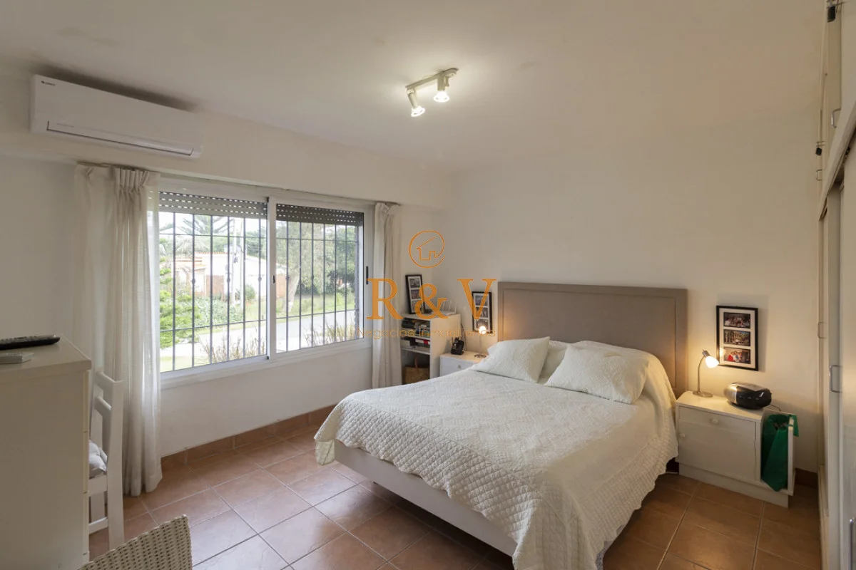 4 dormitorios, 2 en suite, 3 baños, losa radiante mas aires acondicionado en todos los dormitorios. lavarropas y aire acondicionado. Todo bien equipado, mas Bungalow independiente de la casa para servicio o para chicos, 2 ambientes con camas cuchetas, baño completo con calefón, lavarropas y aire acondicionado. Todo bien equipado.