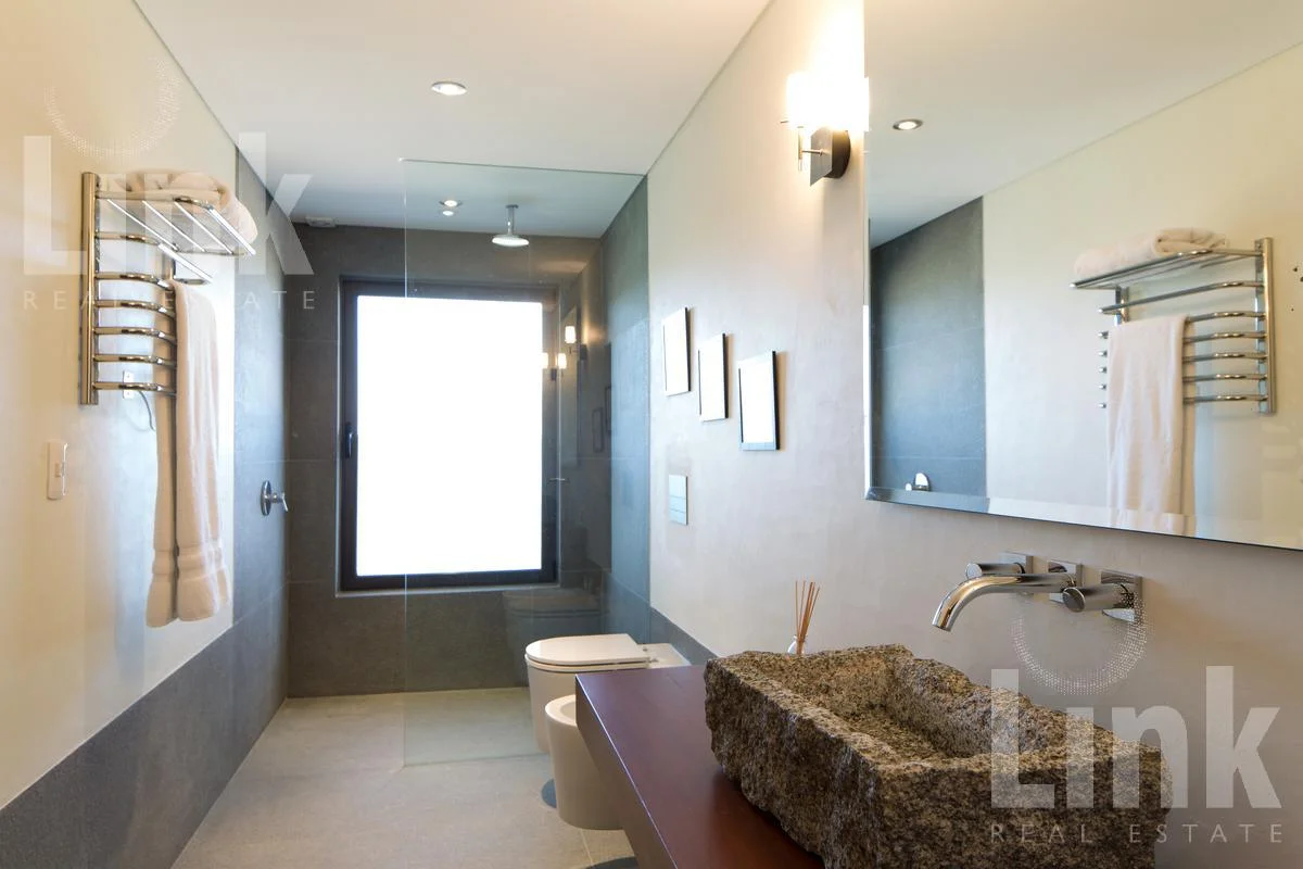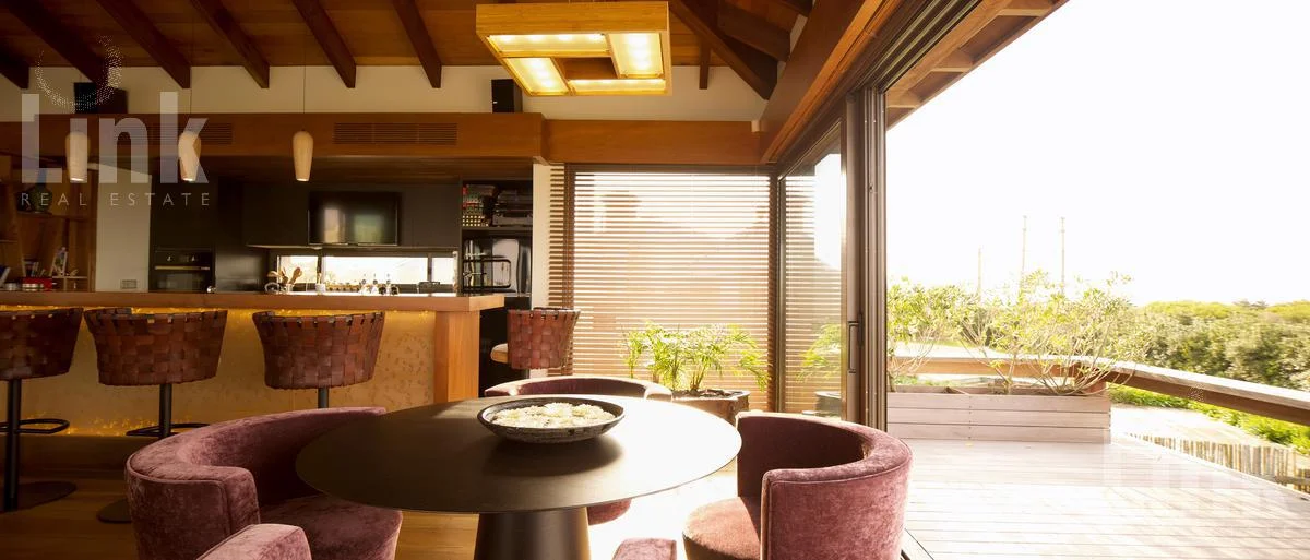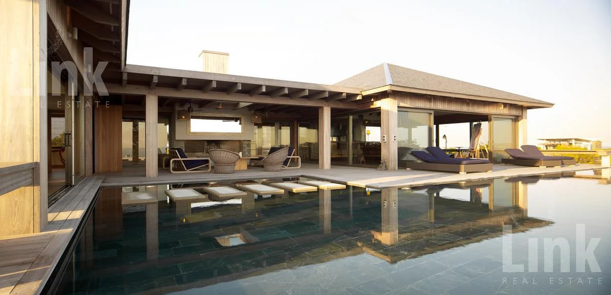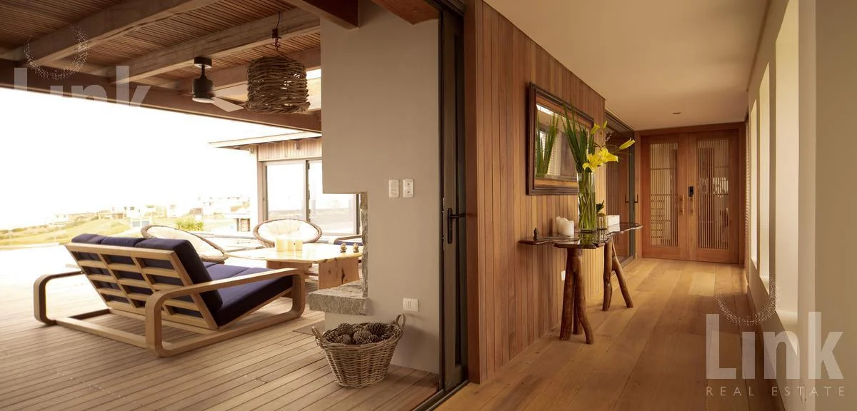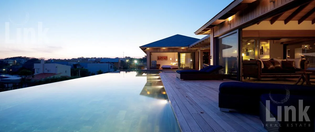 En el área social, los grandes ventanales del living, permiten disfrutar la espectacular vista en casi 360º integrando el mar a todos los ambientes. Enorme deck de lapacho donde la piscina climatizada de borde infinito, se hacen uno con el océano y el horizonte. Un fogón de generosas dimensiones, permite disfrutar la terraza tanto en invierno como en verano, y hace las veces de parrillero.