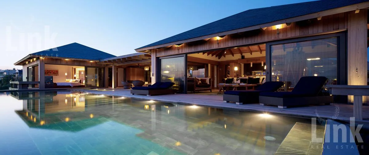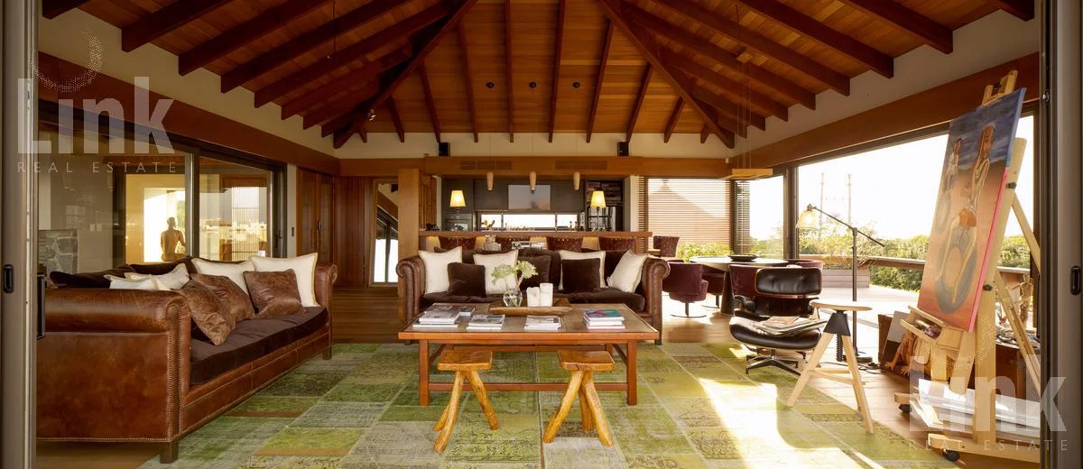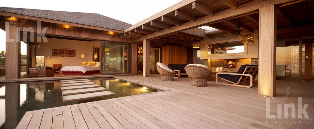 Impactante residencia que se destaca por su arquitectura simple pero contundente a la vez, inspirada en las construcciones tradicionales de Indonesia, esta magnifica propiedad se eleva del terreno para ganar vista al mar. Se desarrolla en 2 bloques de 2 niveles cada uno.